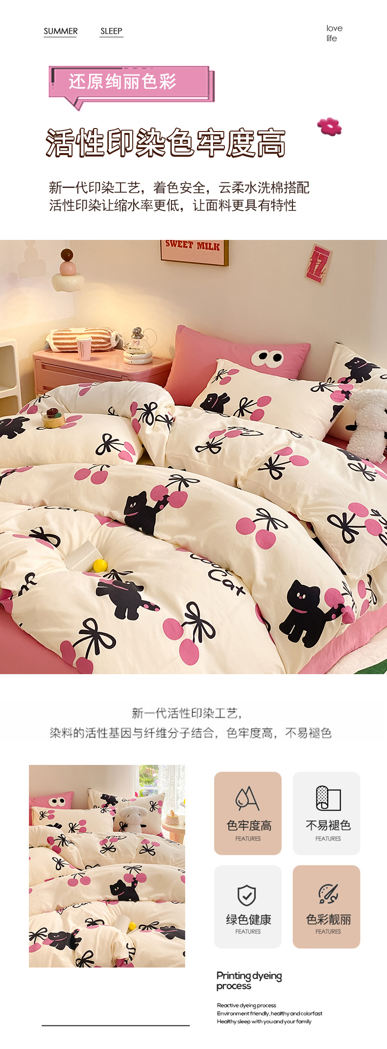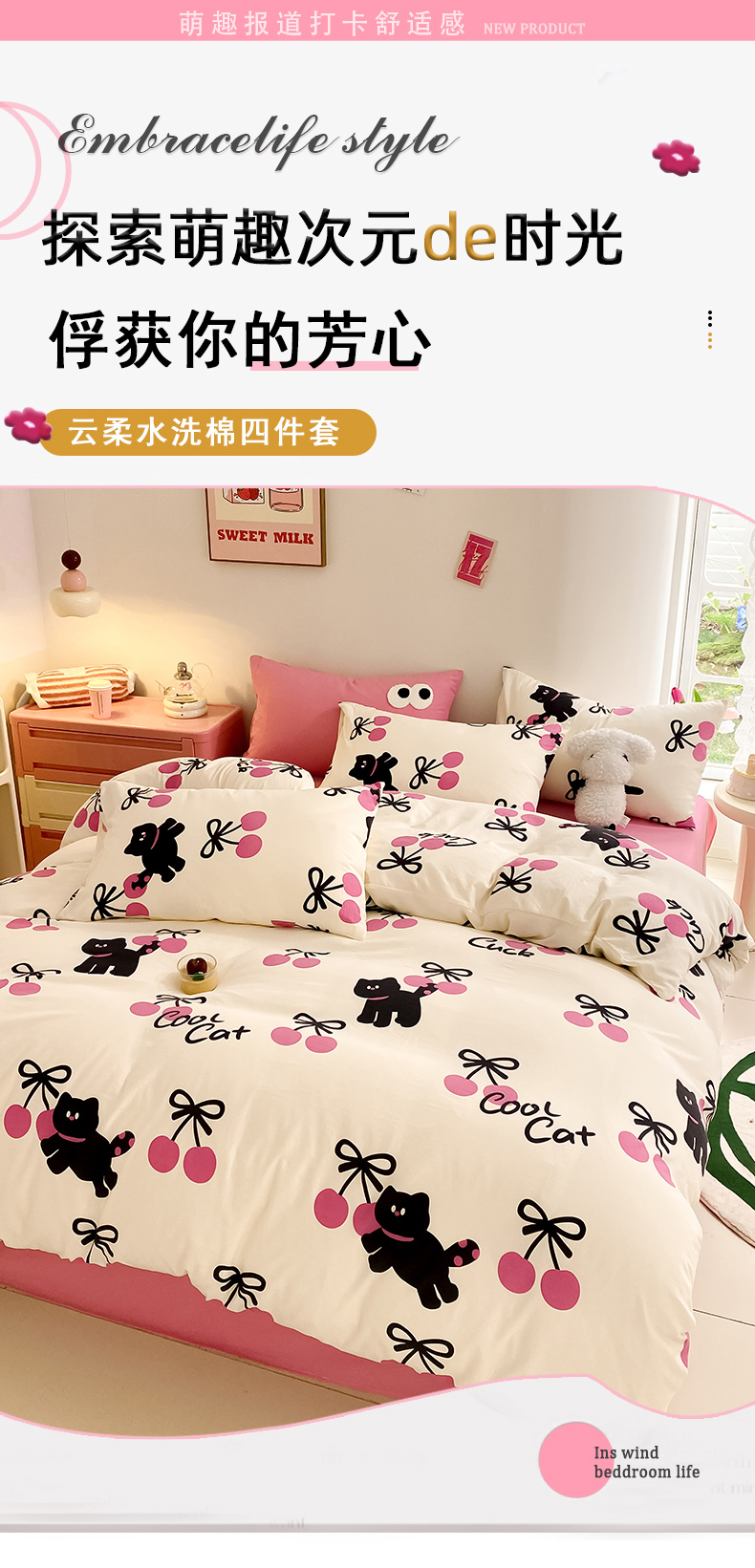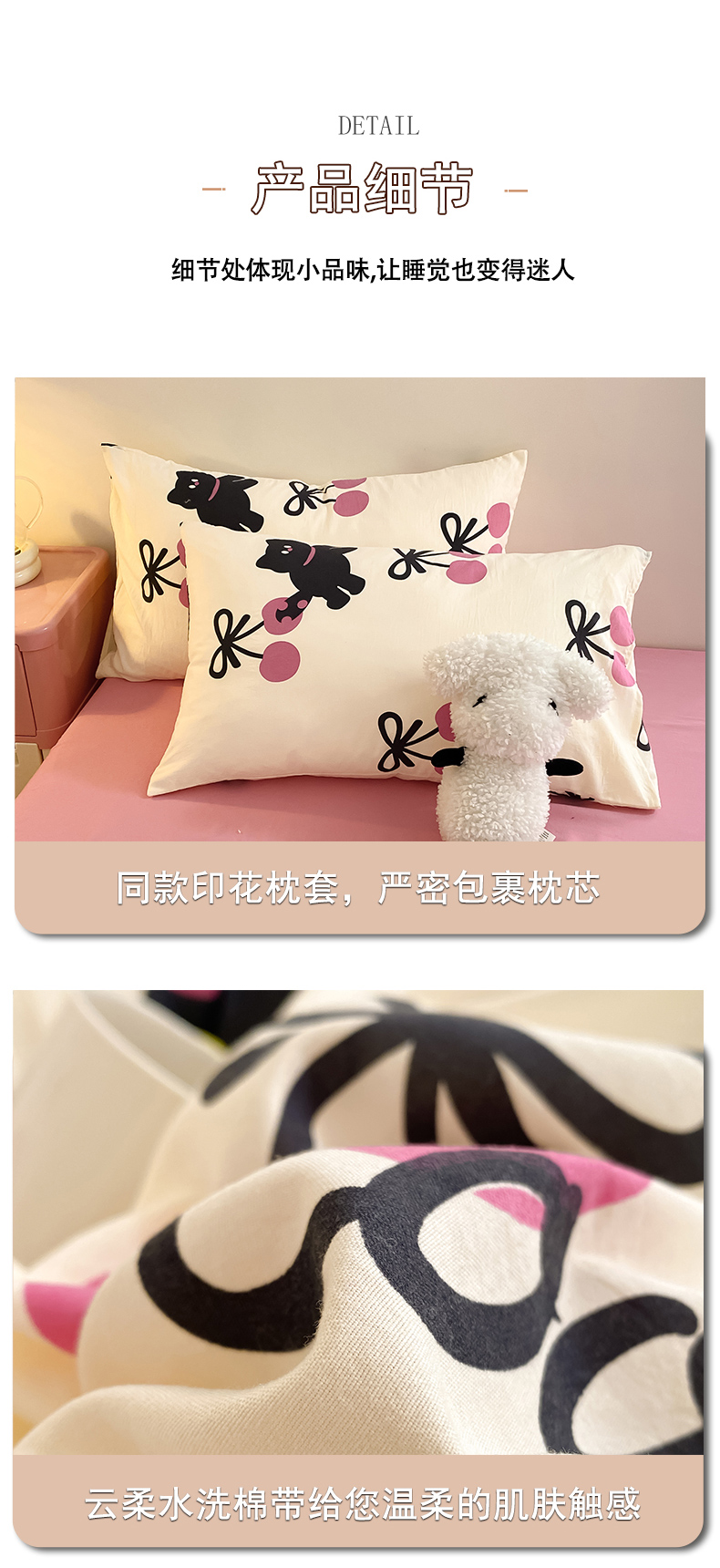 当前位置: 91家纺网 > 商品网购 > 床品套件 > 四件套 > 水洗棉四件套 > 葡萄家 2024新款双层纱云柔水洗棉萌趣卡通系列四件套(提供买家秀联系客服) 樱桃小猫