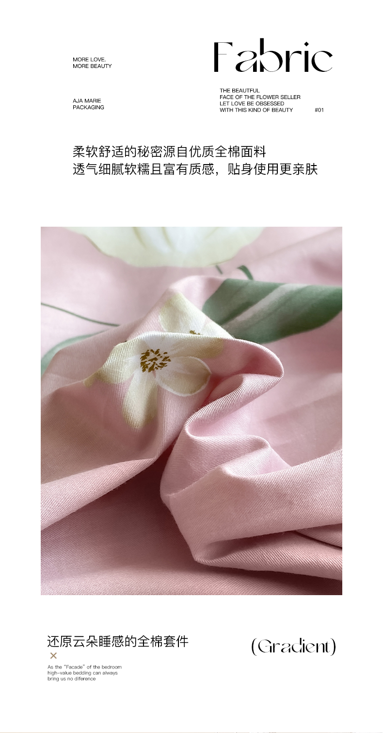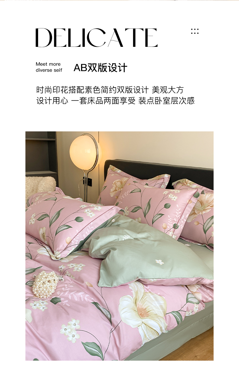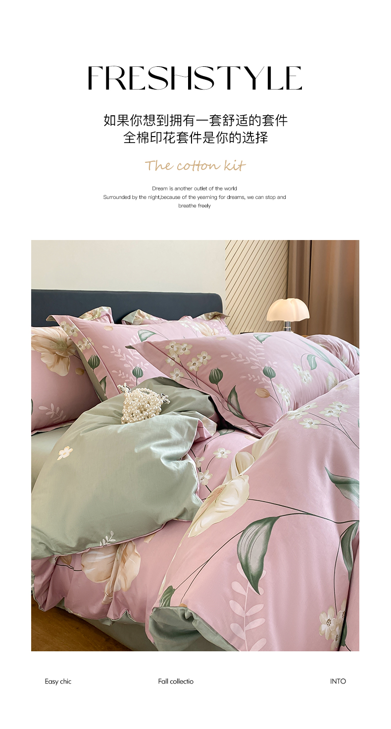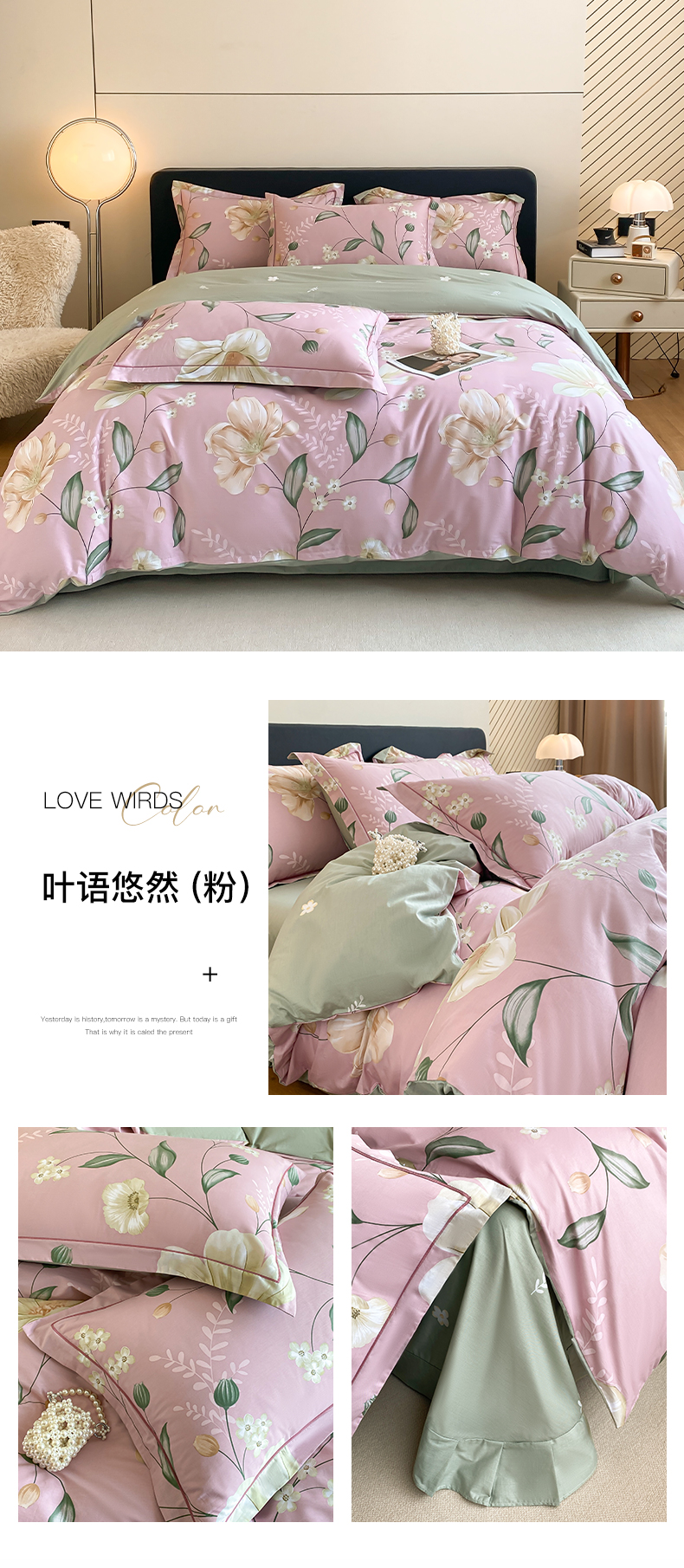 商品名称:格里芬家纺 2025新款全棉四件套13376纯棉印花四件套 叶语悠然-粉