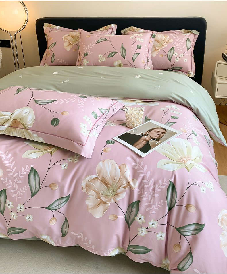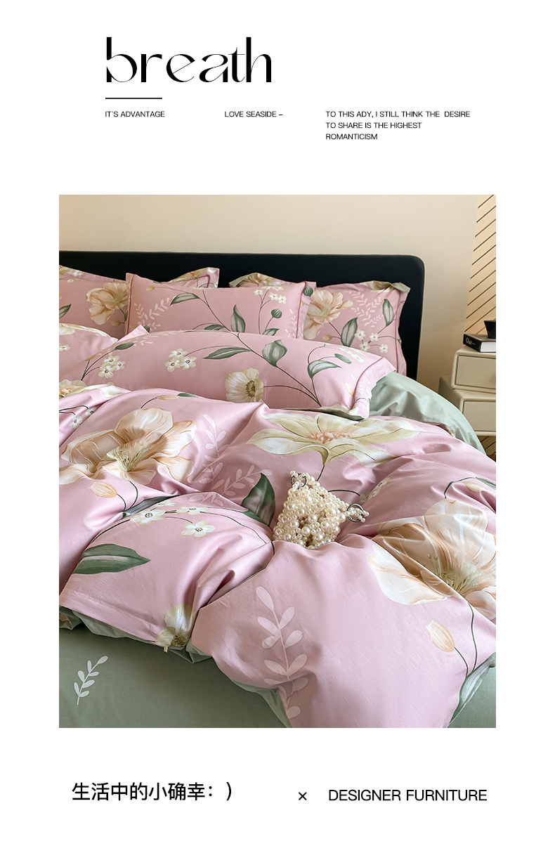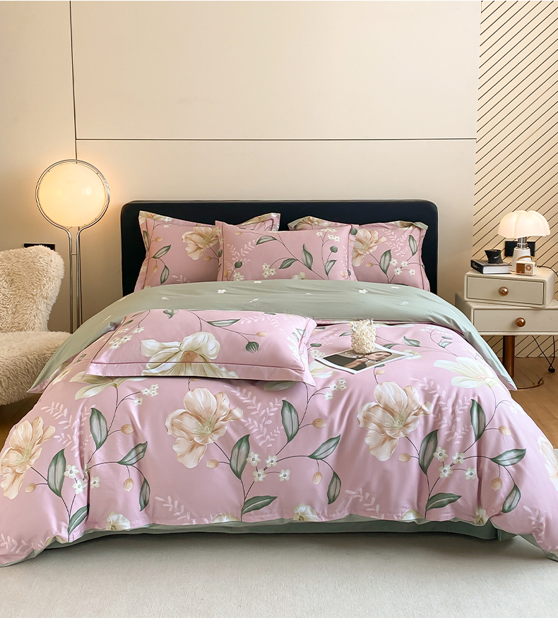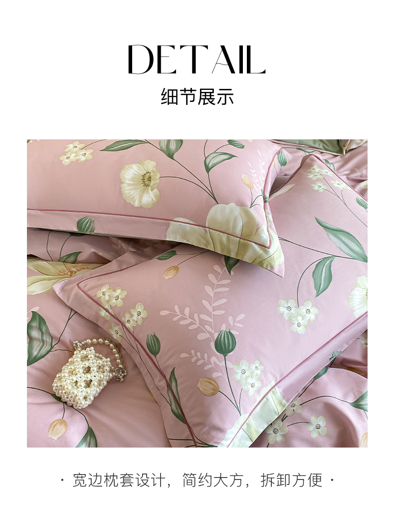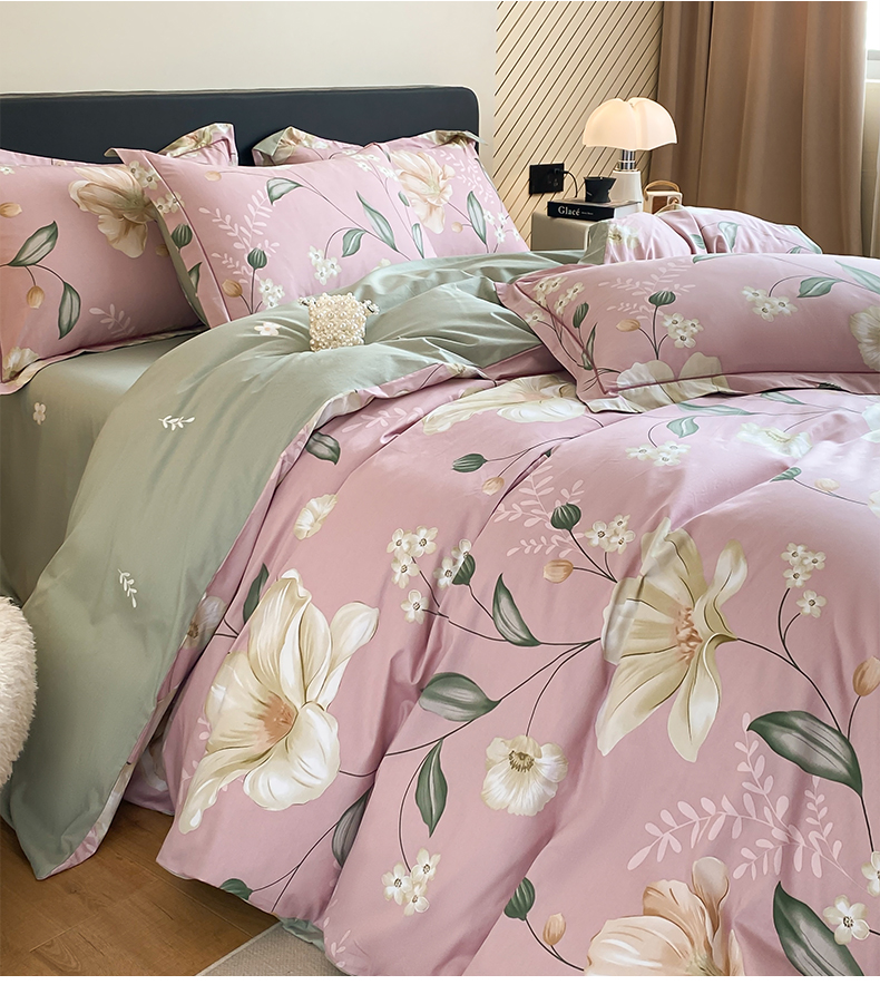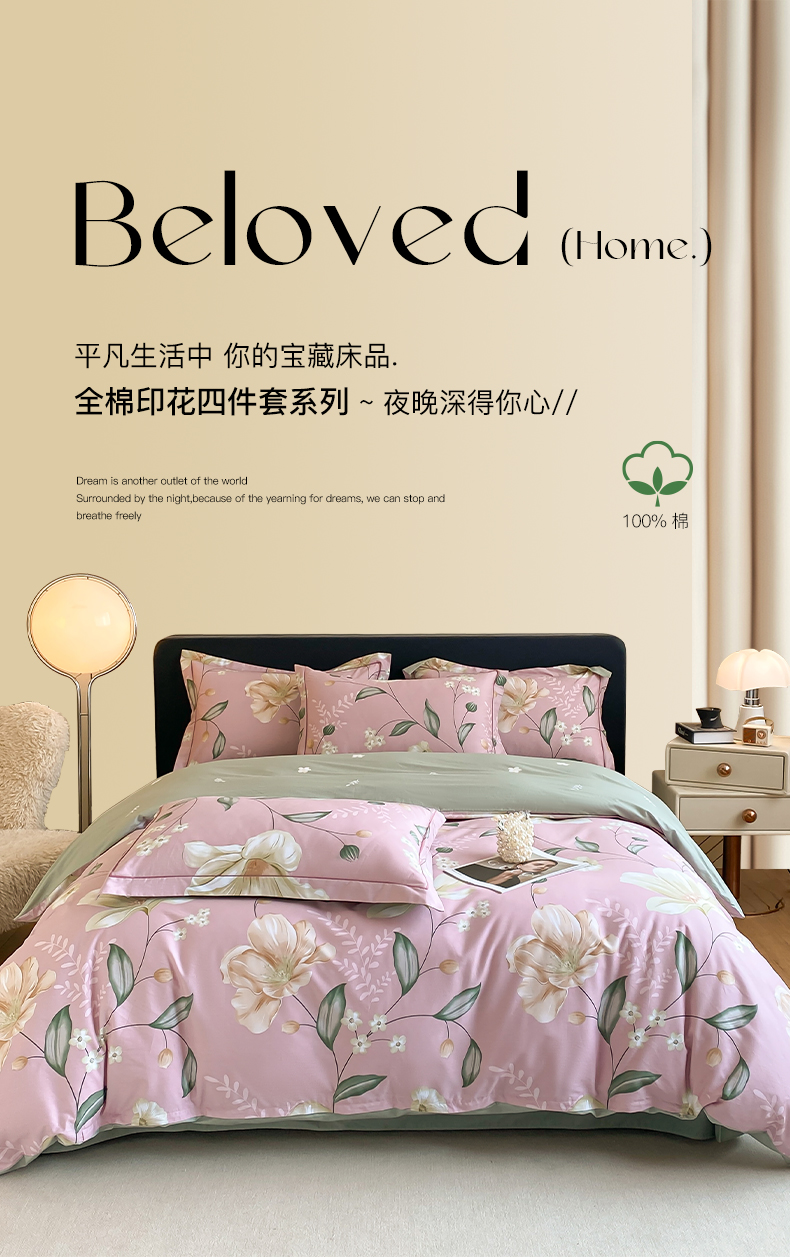 商品名称:格里芬家纺 2025新款全棉四件套13376纯棉印花四件套 叶语悠然-粉