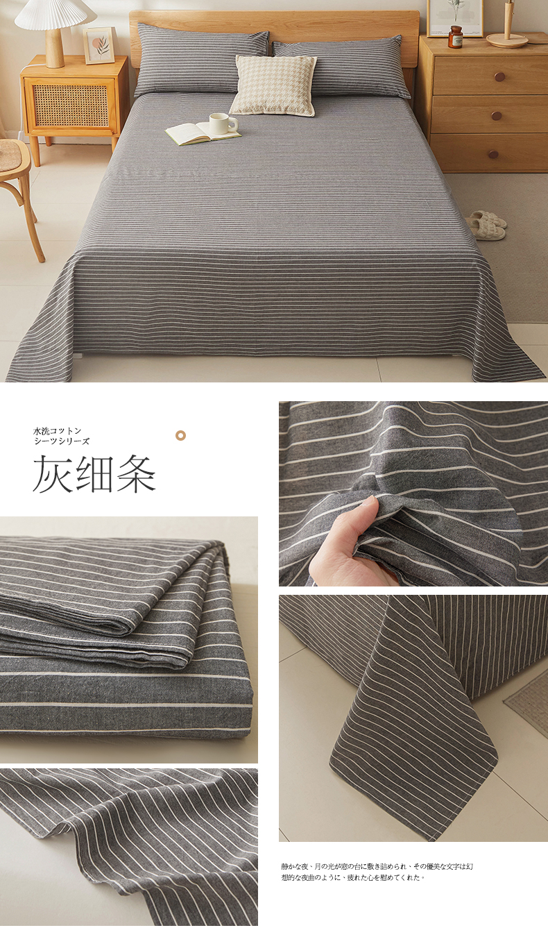 • 91家纺网 家纺一手货源 找家纺 恋人优选 2024新款色织纯棉水洗棉单床单 灰细条