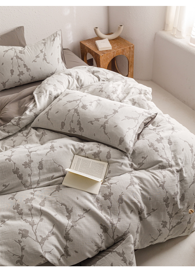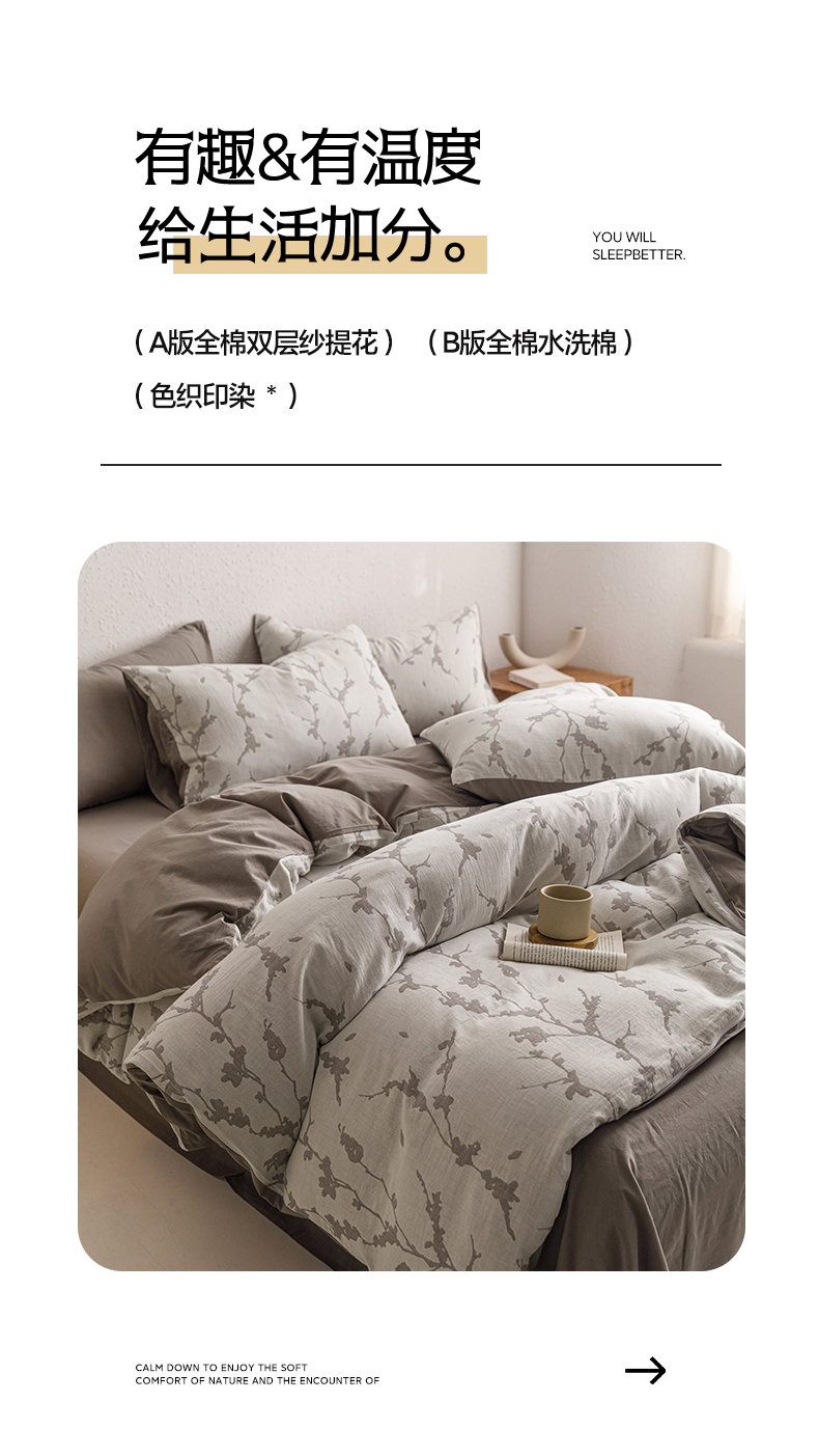 商品名称:雅居纺家纺 2024新款双层纱色织提花四件套 初春-灰