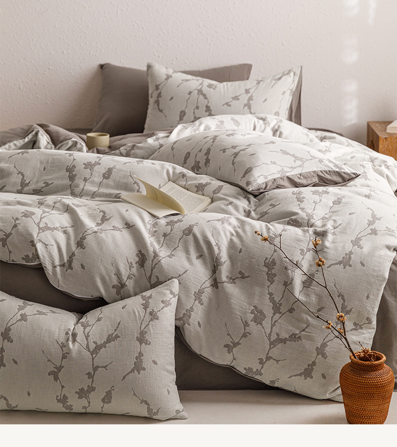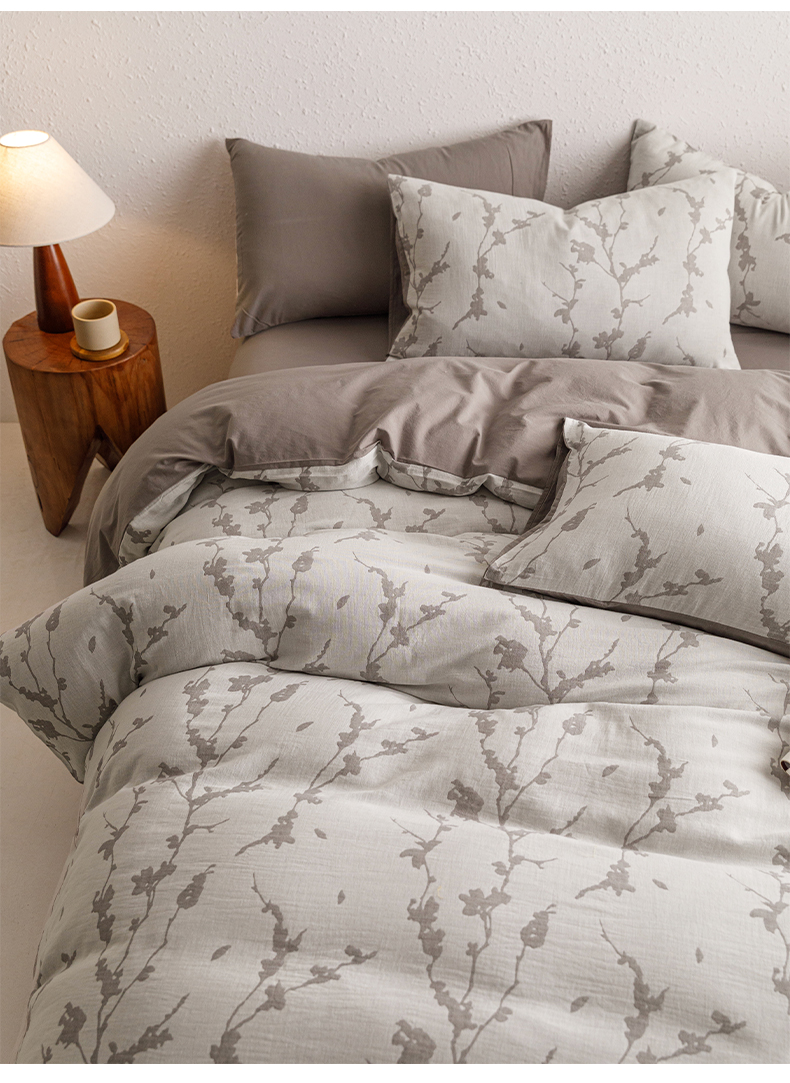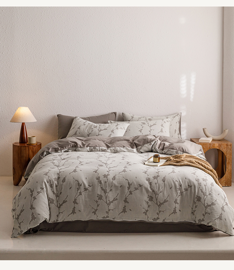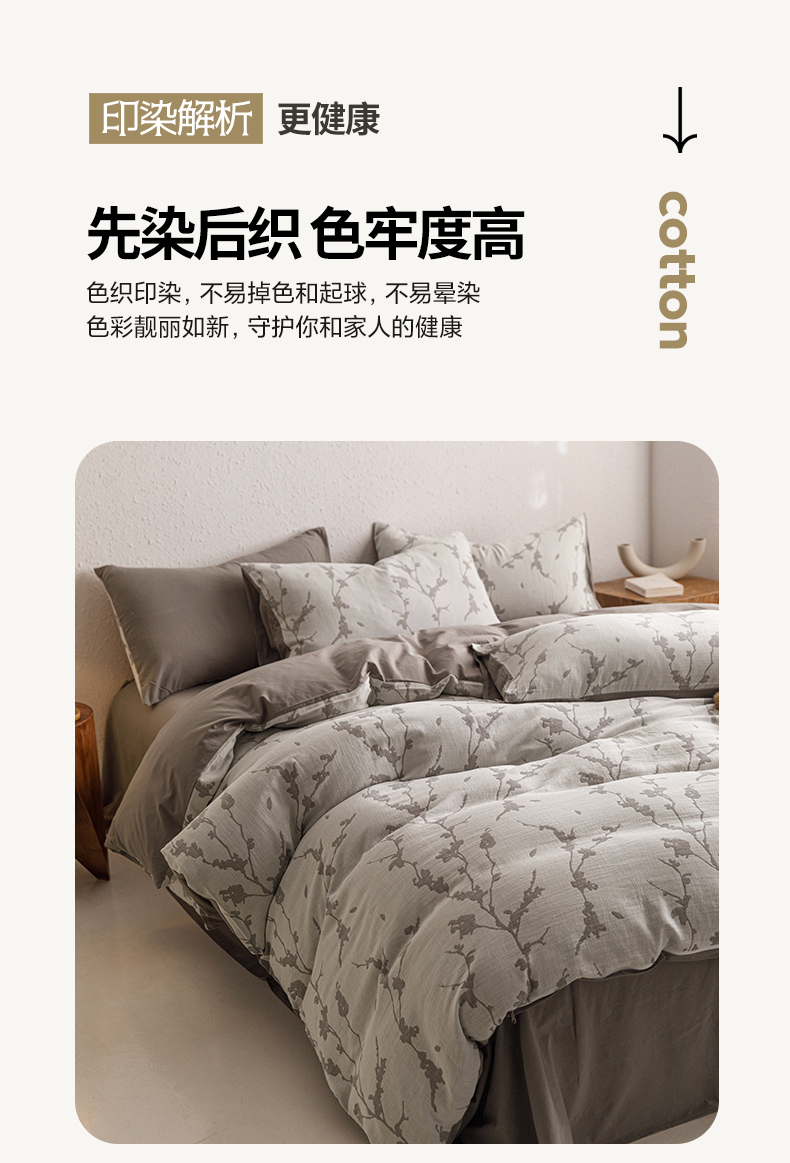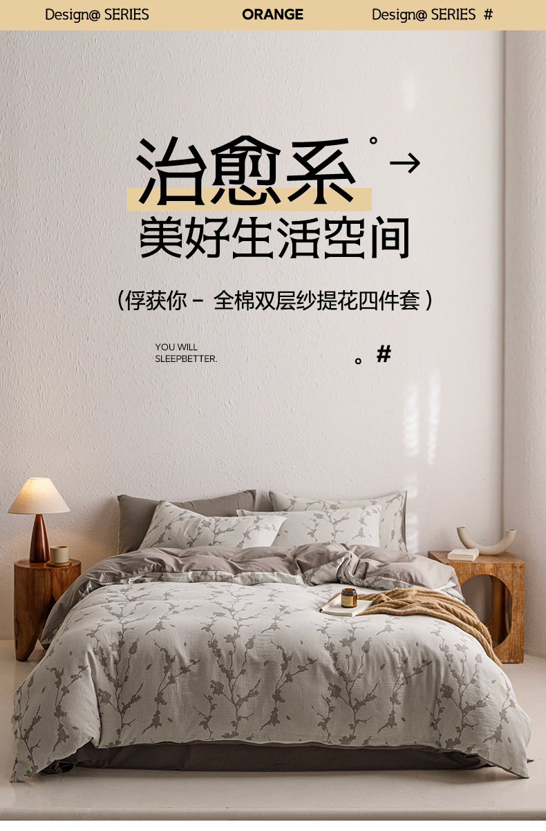 雅居纺家纺 2024新款双层纱色织提花四件套 初春-灰