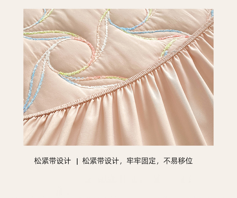 尊康家纺(原磊科) 2024新款亲肤奶昔棉夹棉床裙-风雅 风雅-黛粉,风雅-黛粉