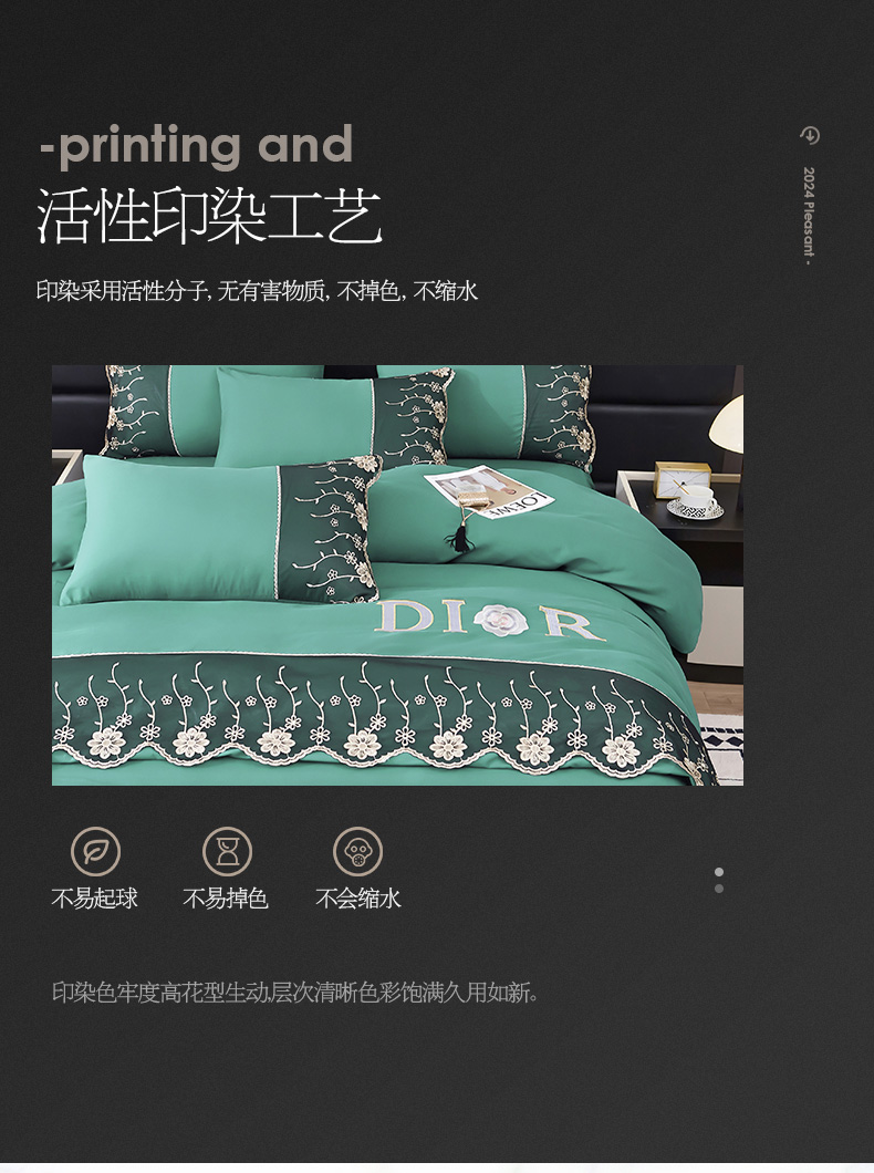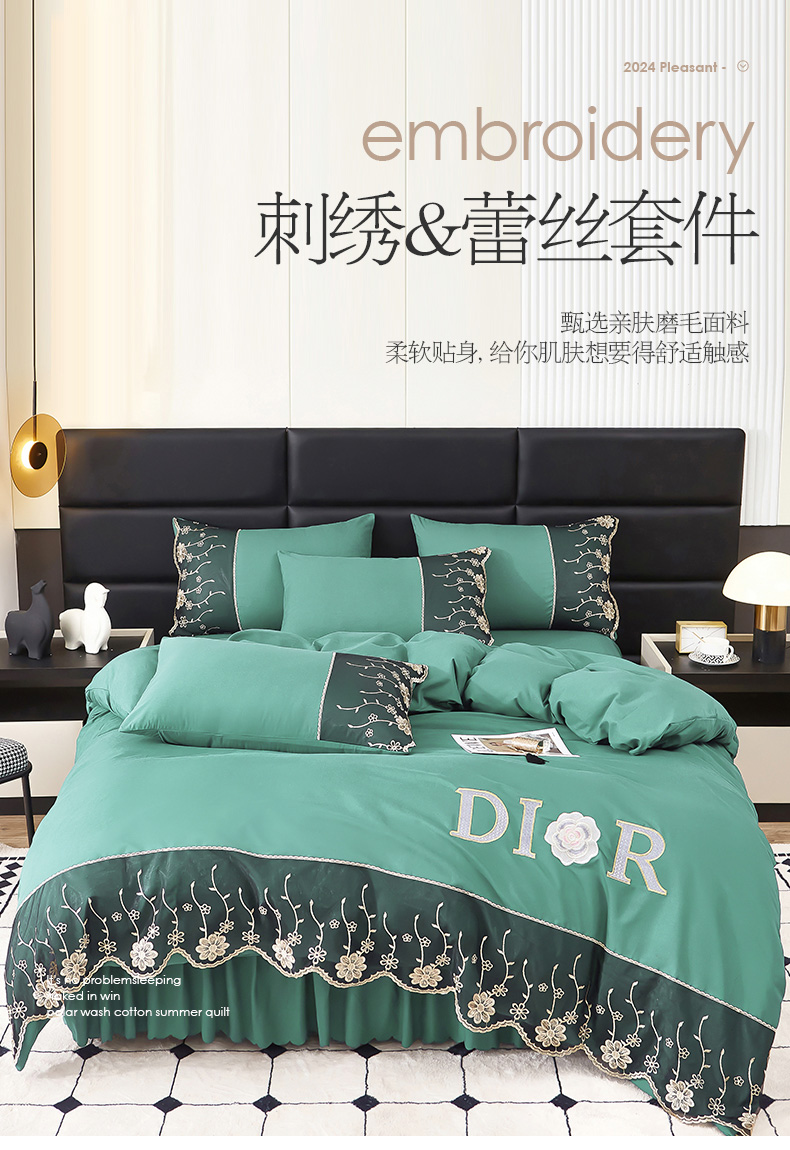 莉莉安 2025新款亲肤磨毛蕾丝刺绣四件套-蒂欧系列 蒂欧-雅致绿