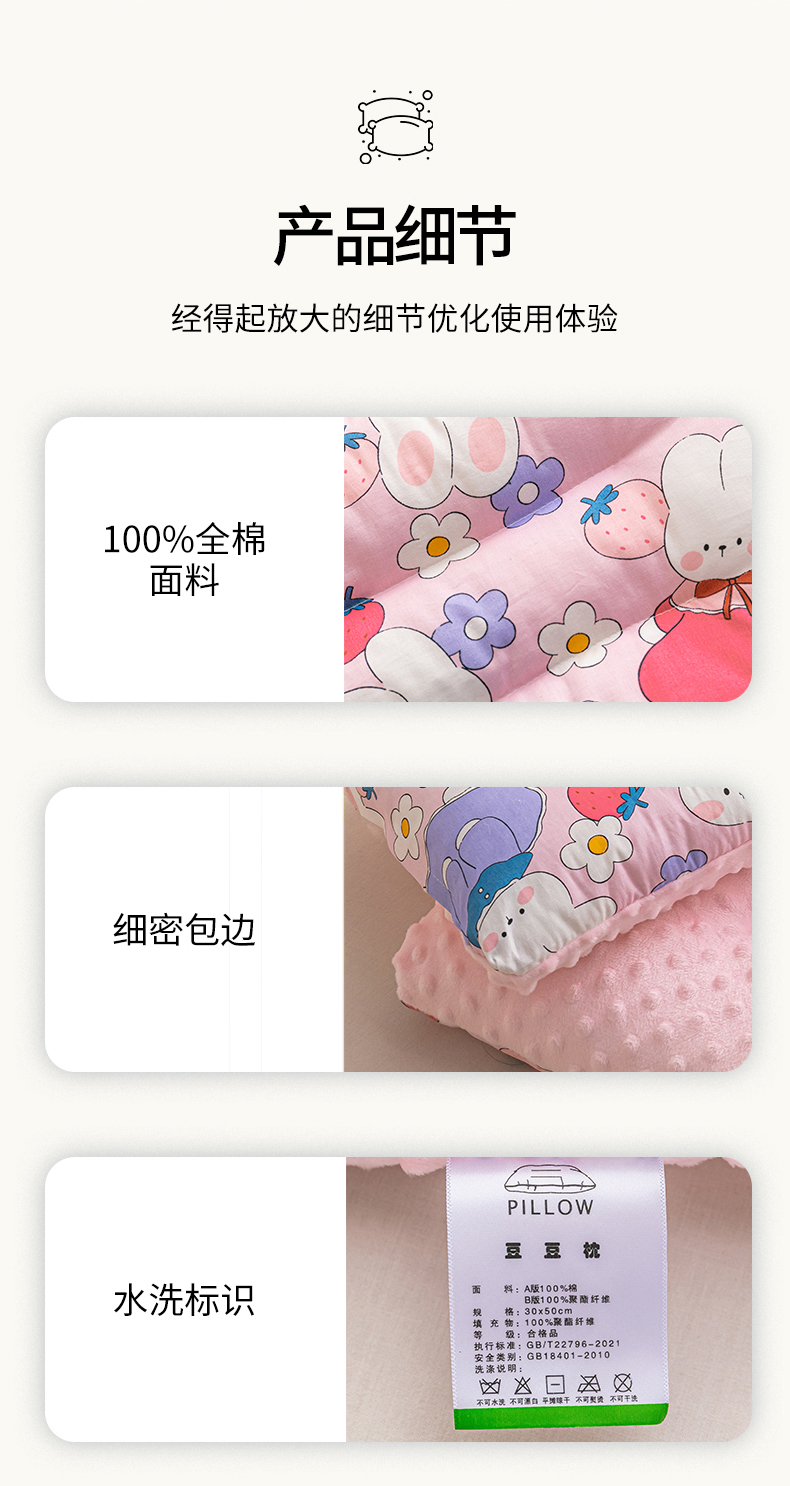 商品名称:芯元素 2024新款儿童全棉豆豆枕 花间小兔