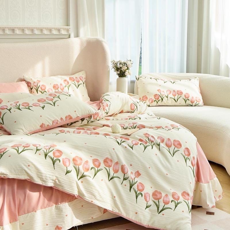 (总)富之航家纺 2024爆款公主风床盖四件套新款小清新提花针织棉床盖四件套,蝶恋花咖,比心,饼干熊,芙蔓,复苏,格调,剪秋,蓝图,梦蝶,蜜桃,莫吉,清欢,素漫,雾里花,相思兰,玉隐