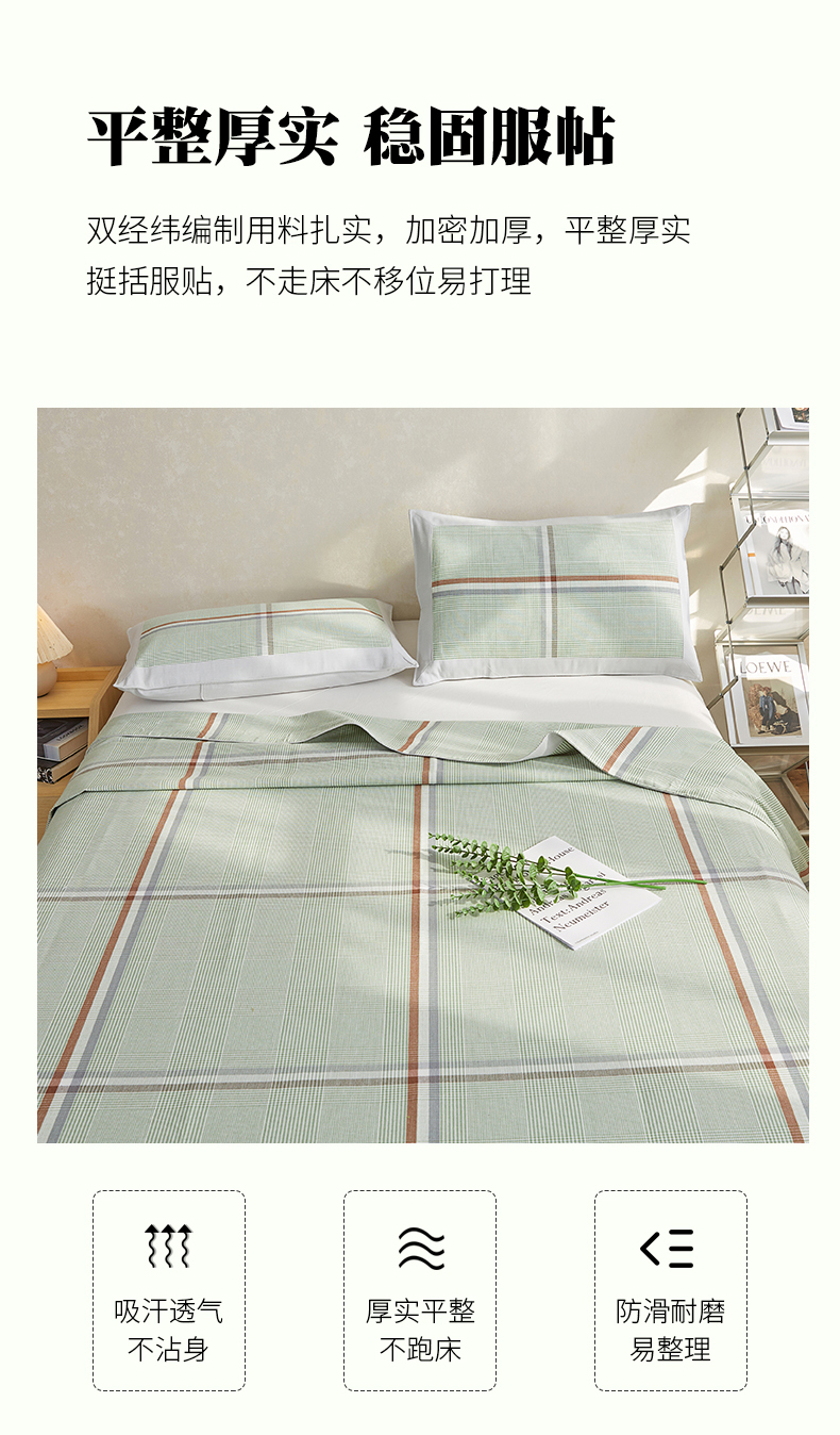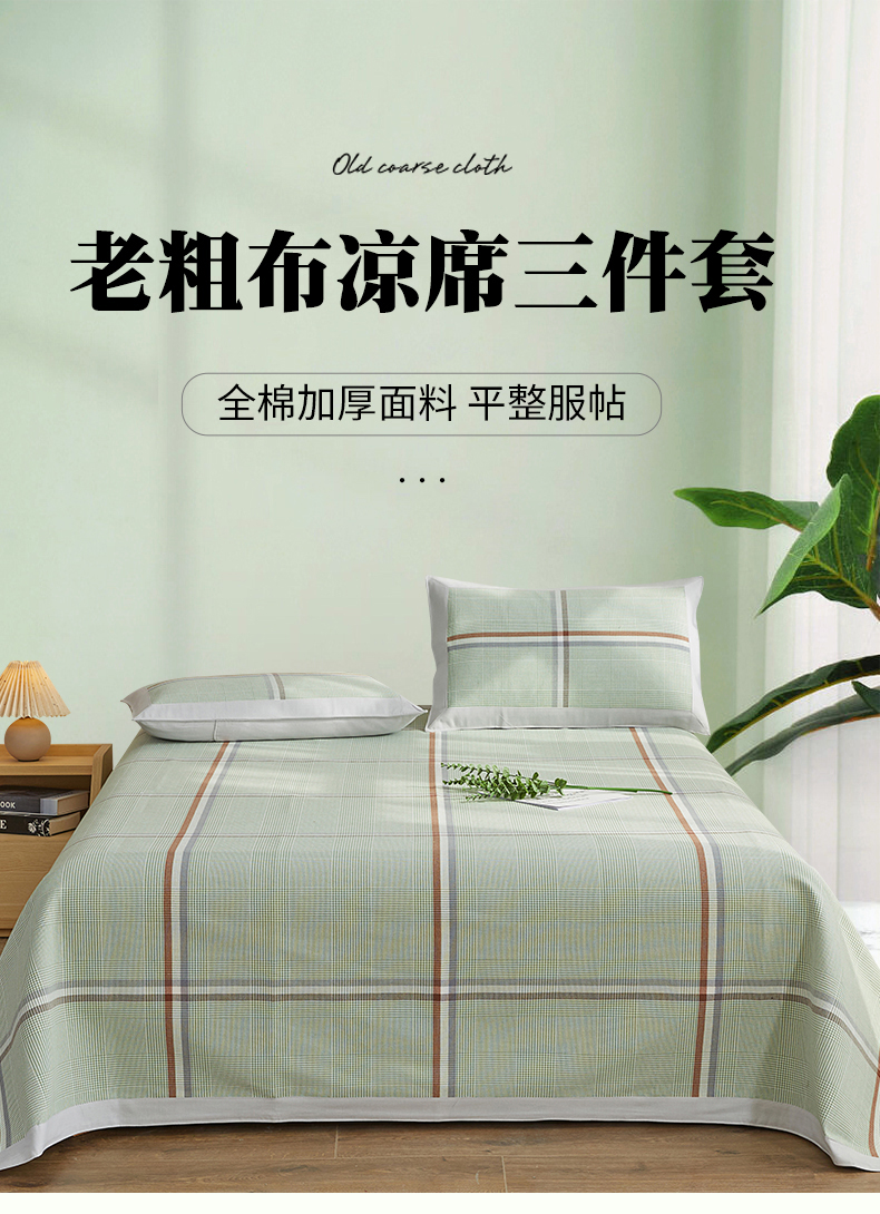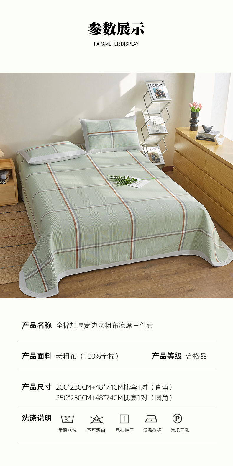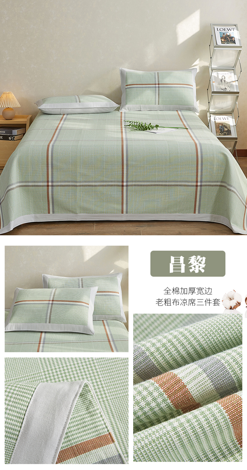 商品名称:棉乐町 2025新款全棉加厚宽边老粗布凉席三件套 昌黎
