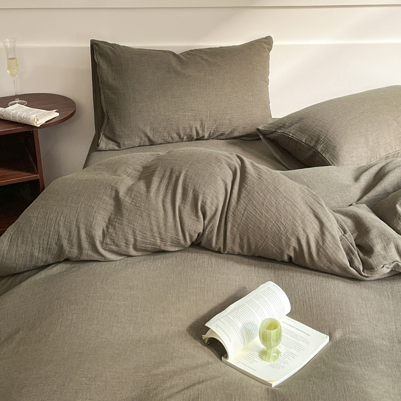 商品名称:睡棉坊 2024新款全棉色织提花双层纱复古单被套 千喜格-绿