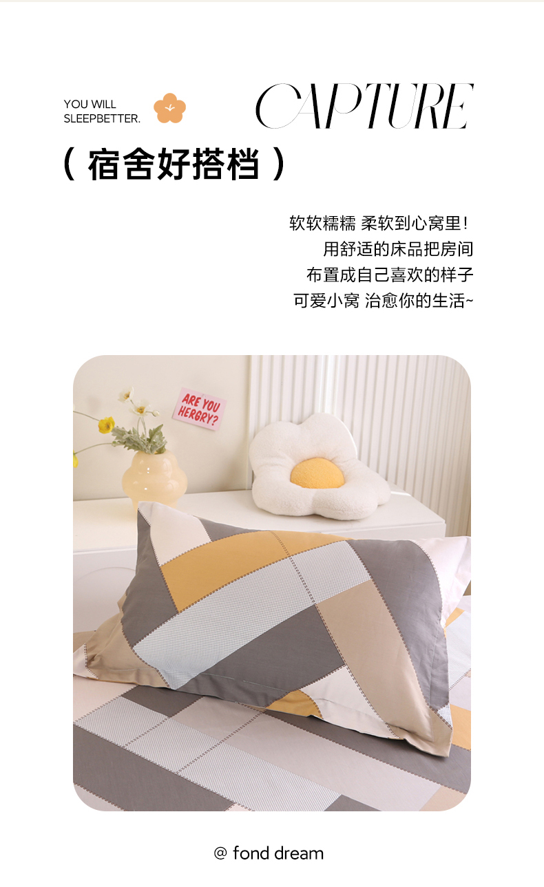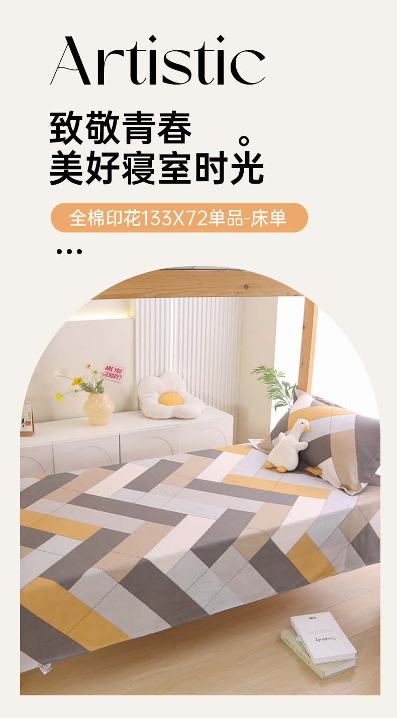 凯森家纺 2024新款全棉13372学生床单三件套直播代发 索格-咖