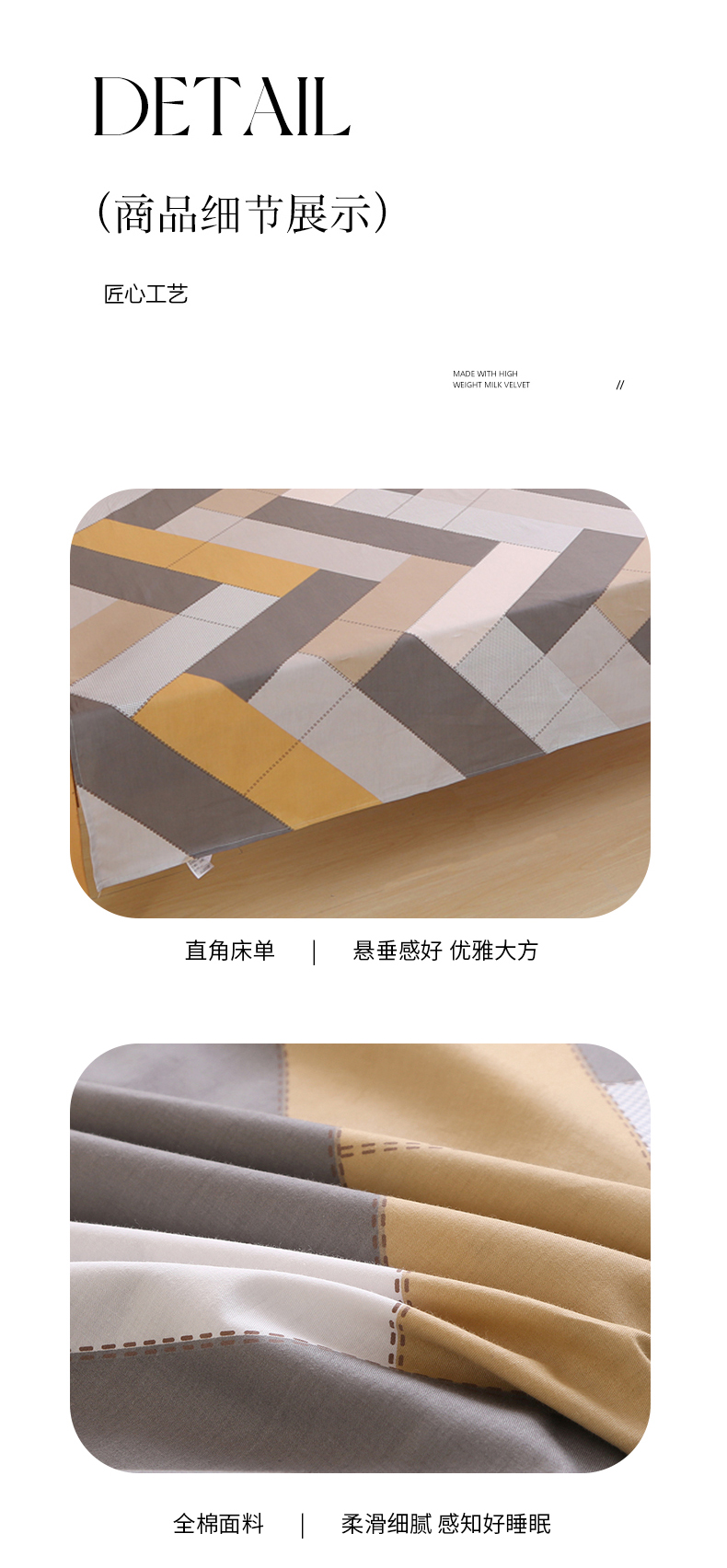 商品名称:凯森家纺 2024新款全棉13372学生床单三件套直播代发 索格-咖