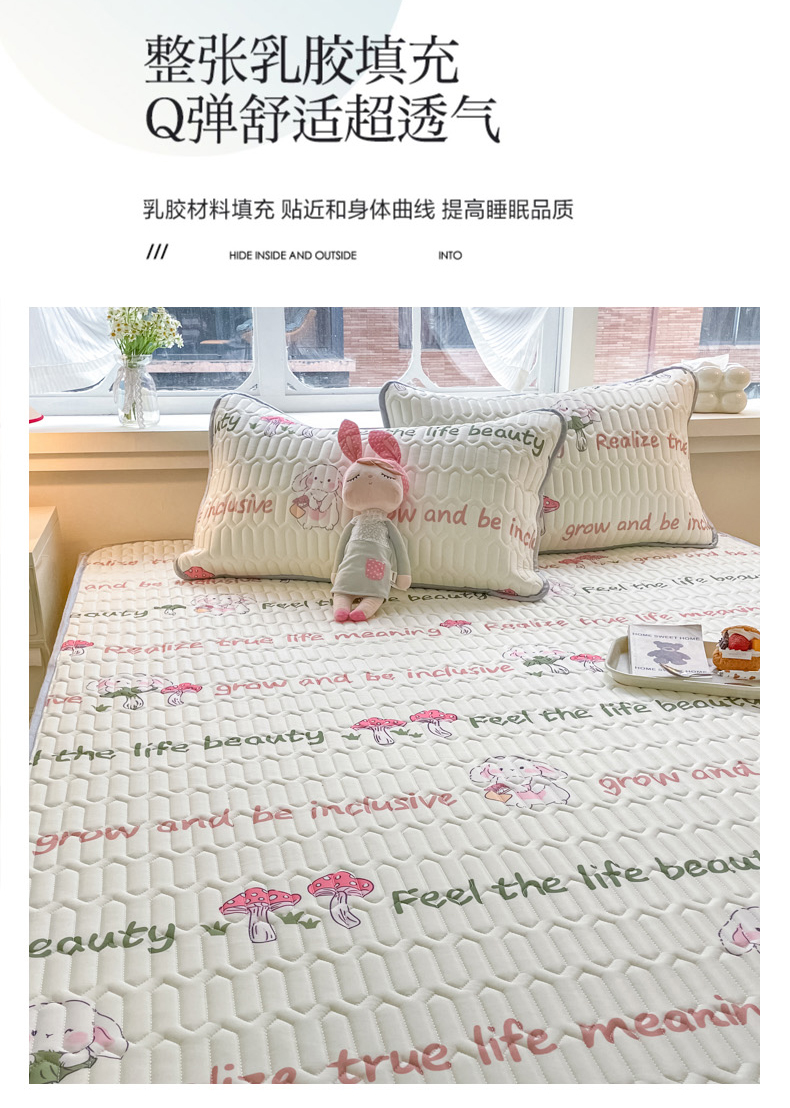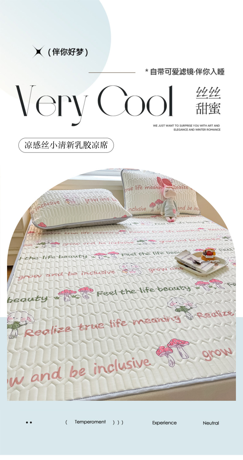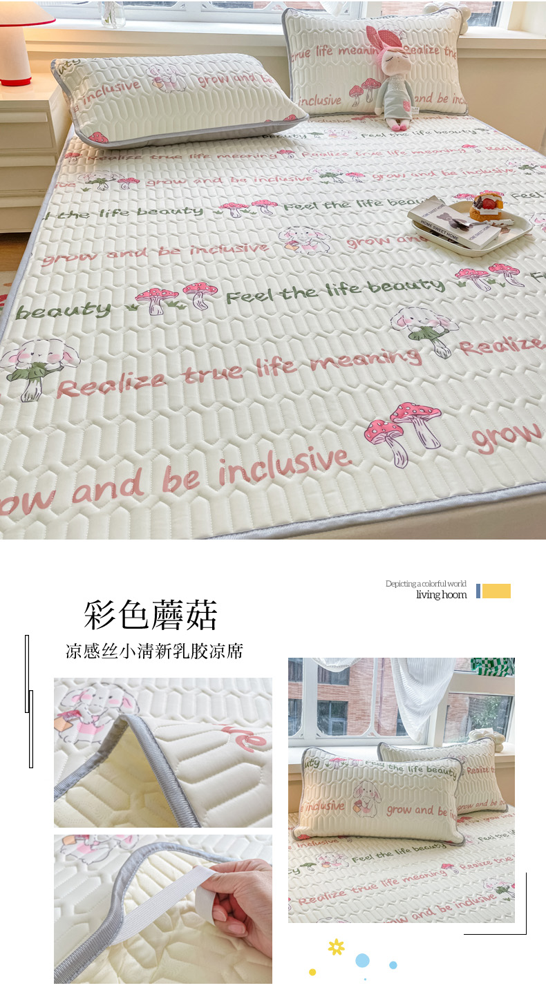 商品名称:柒月家居 2024新款贴身舒适厚度0.5小清新乳胶凉席 彩色蘑菇