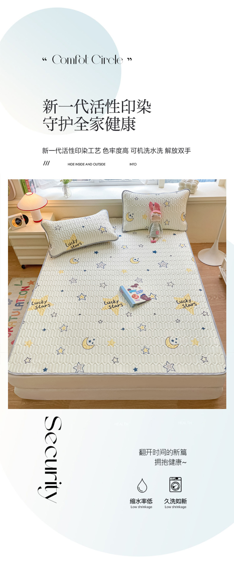 商品名称:柒月家居 2024新款贴身舒适厚度0.5小清新乳胶凉席 幸运星
