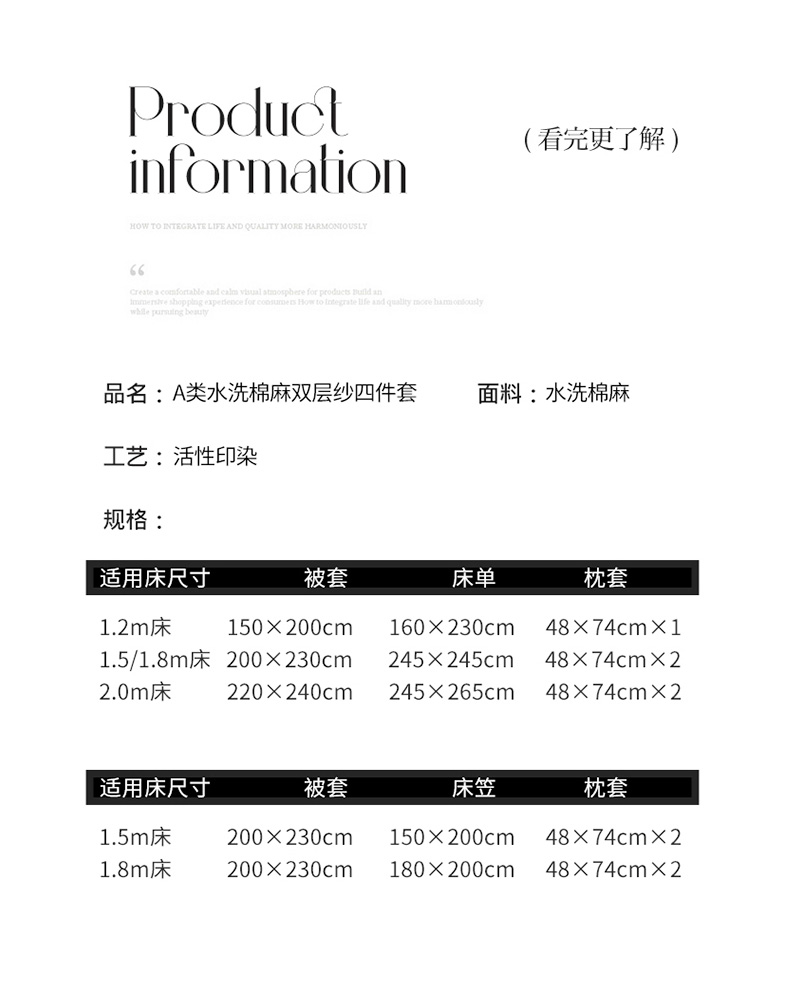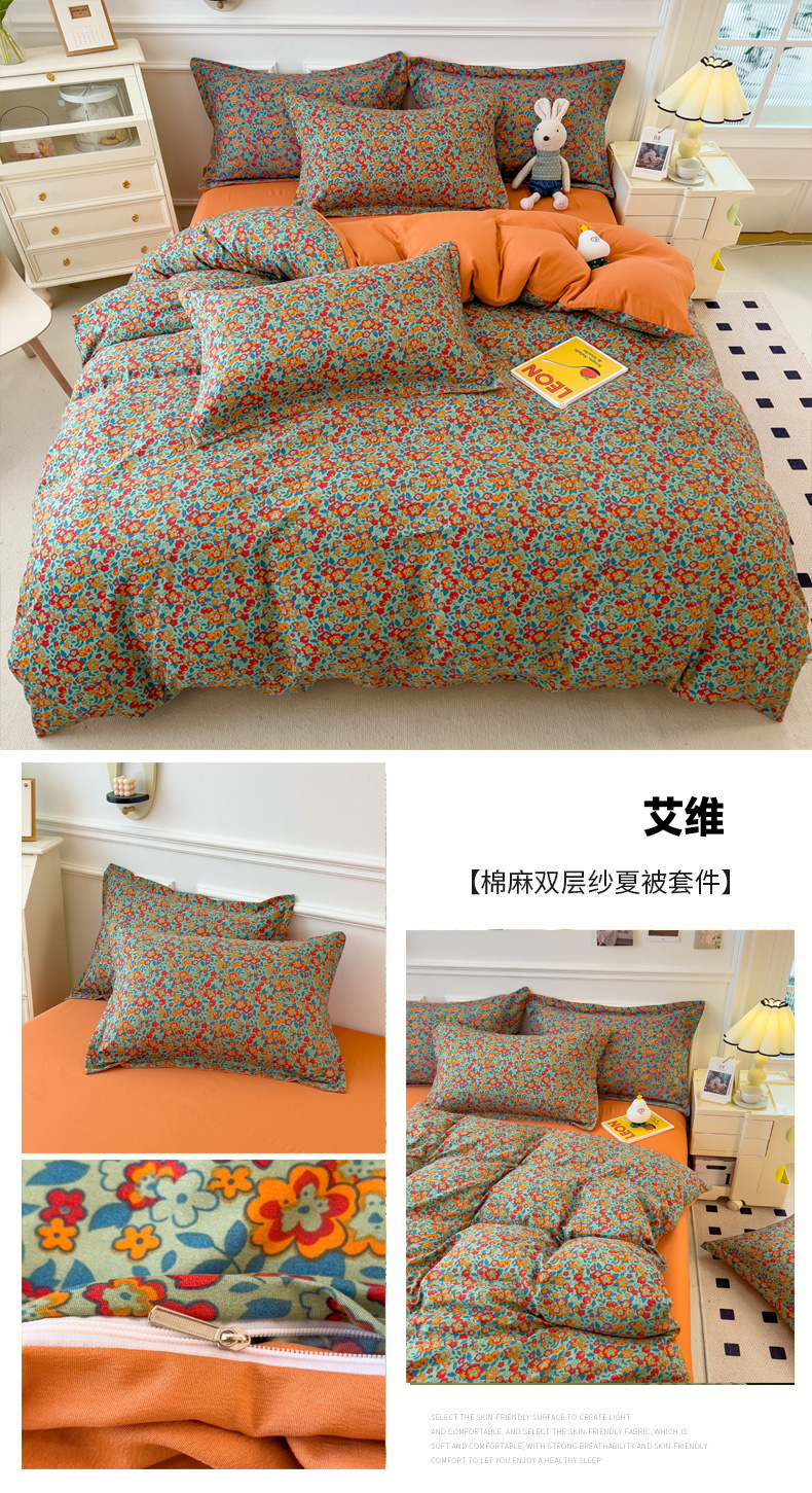 商品名称:(总)宝士康家纺 2024新款10A抗菌水洗棉麻双层纱四件套系列