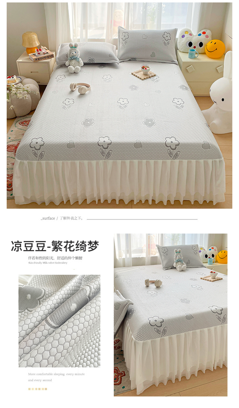 兄弟坊 2024新款韩版PE冰豆豆床裙款凉席 凉豆豆-繁花绮梦