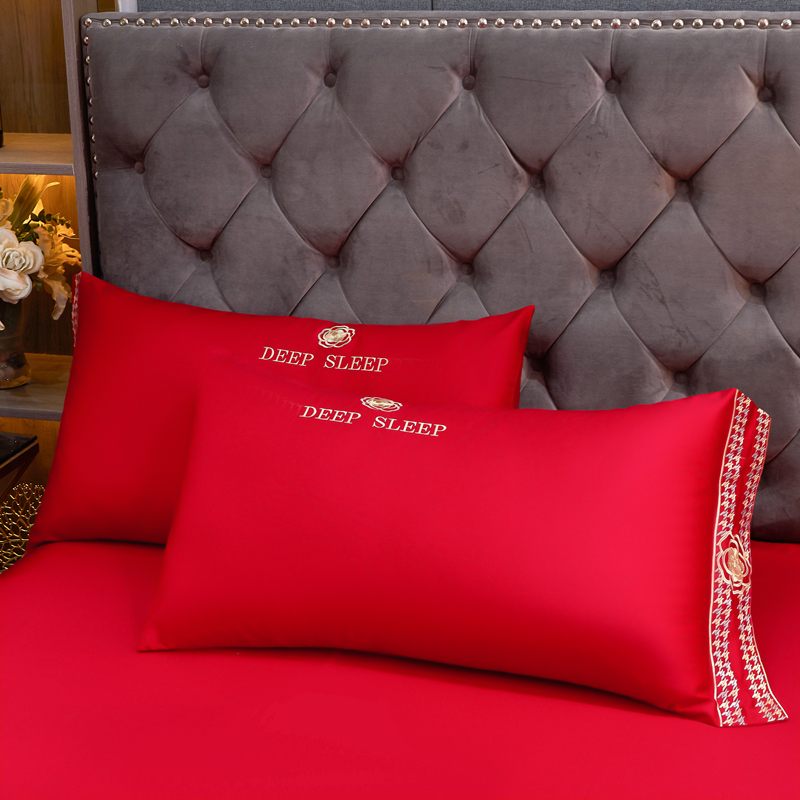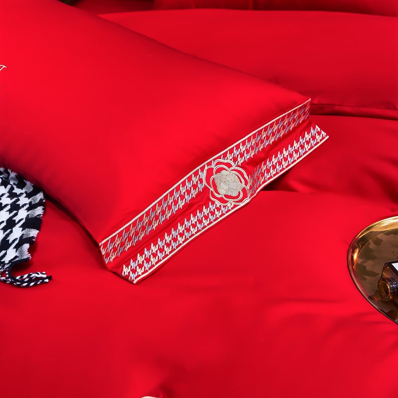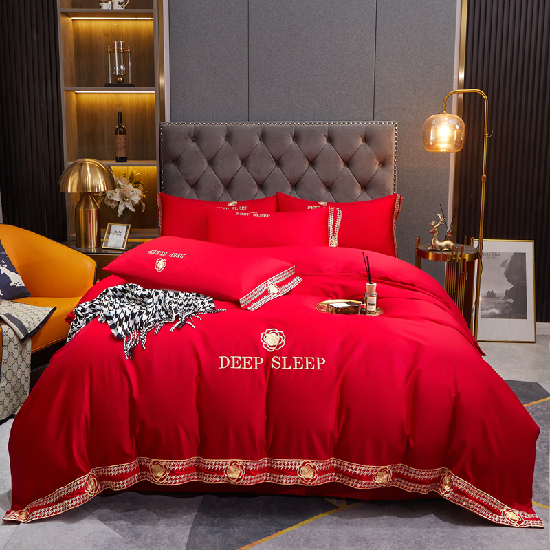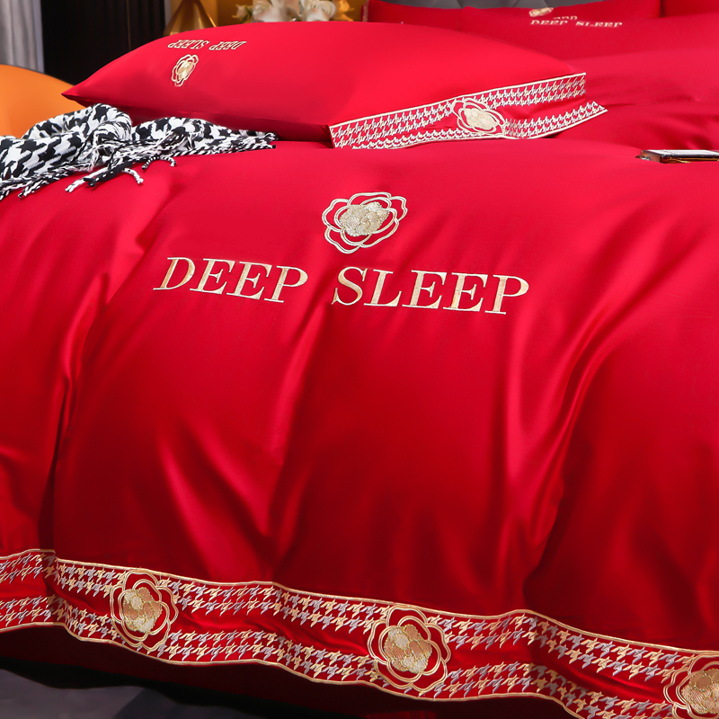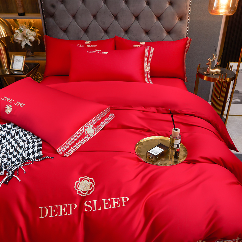 慕她家纺 慕她婚庆四件套全棉纯棉刺绣一花多色床上用品 倾心 大红