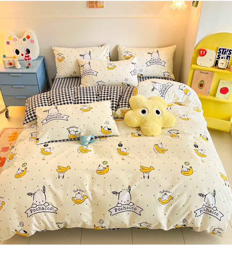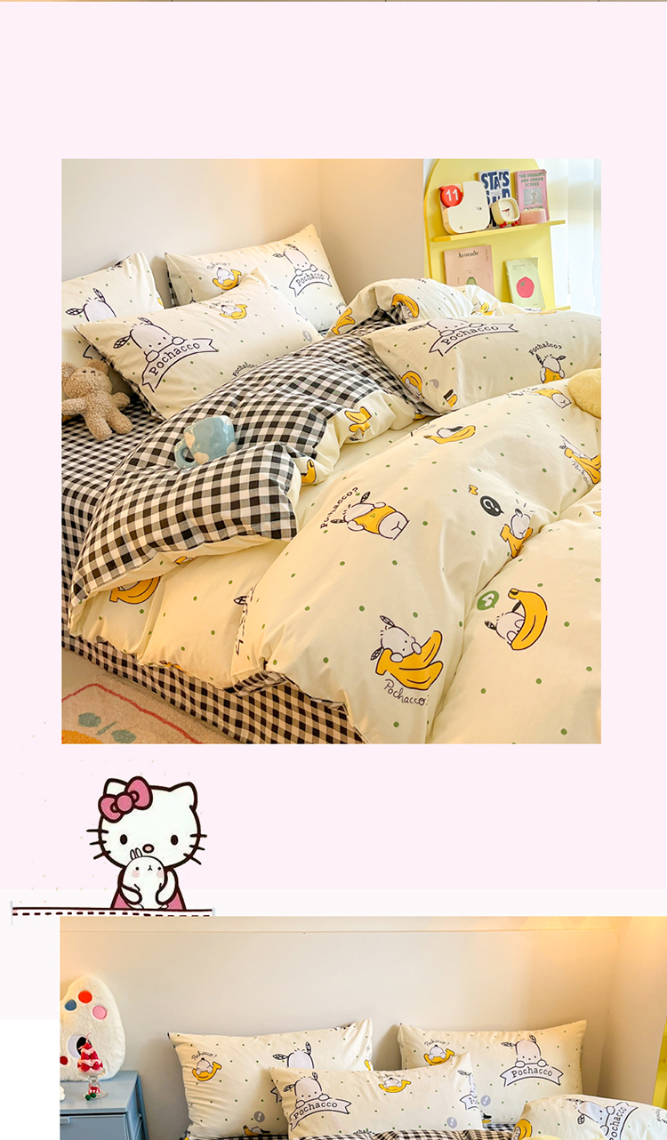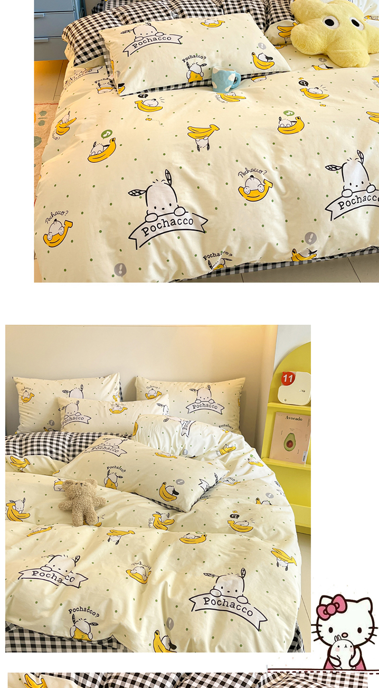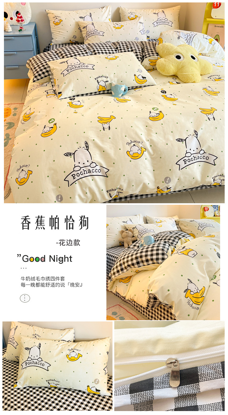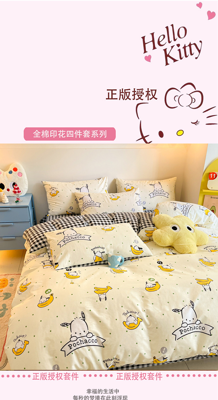 三朵 2024年全棉简单款三丽鸥系列四件套 香蕉帕恰狗