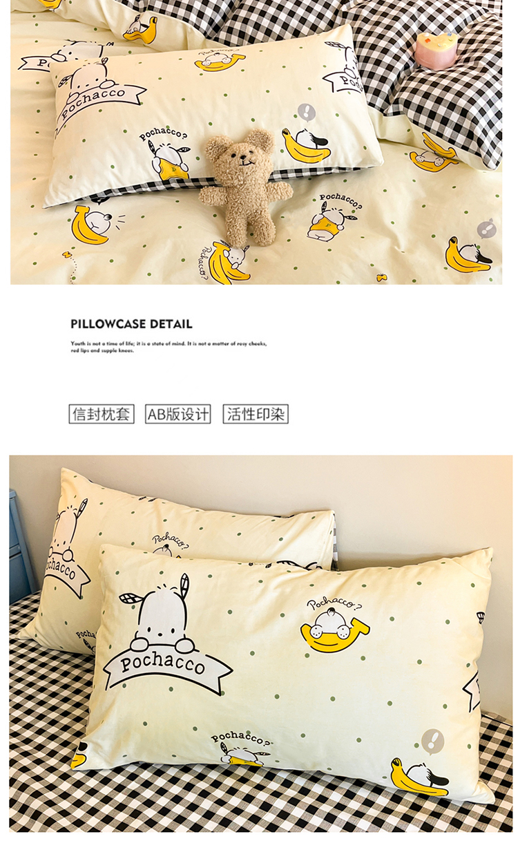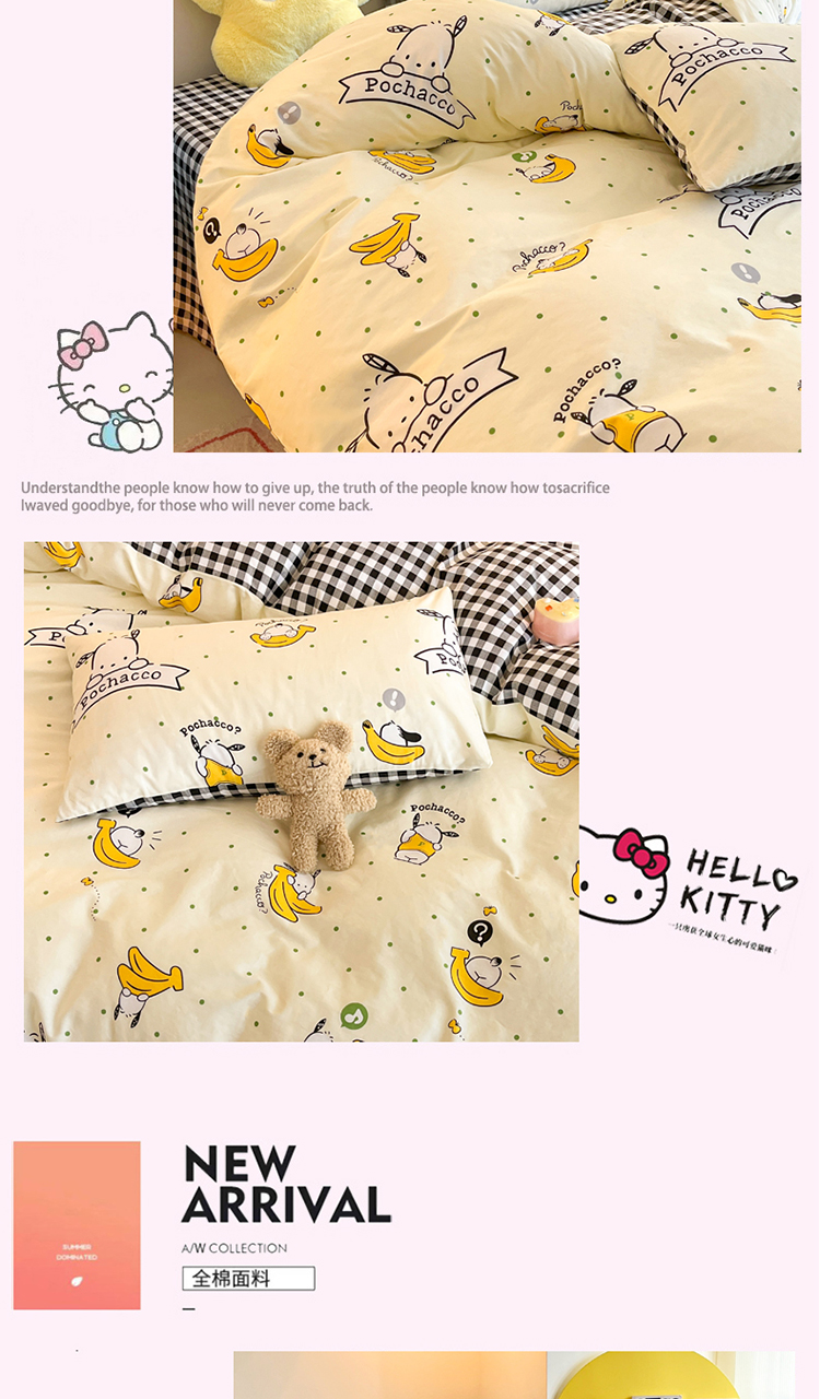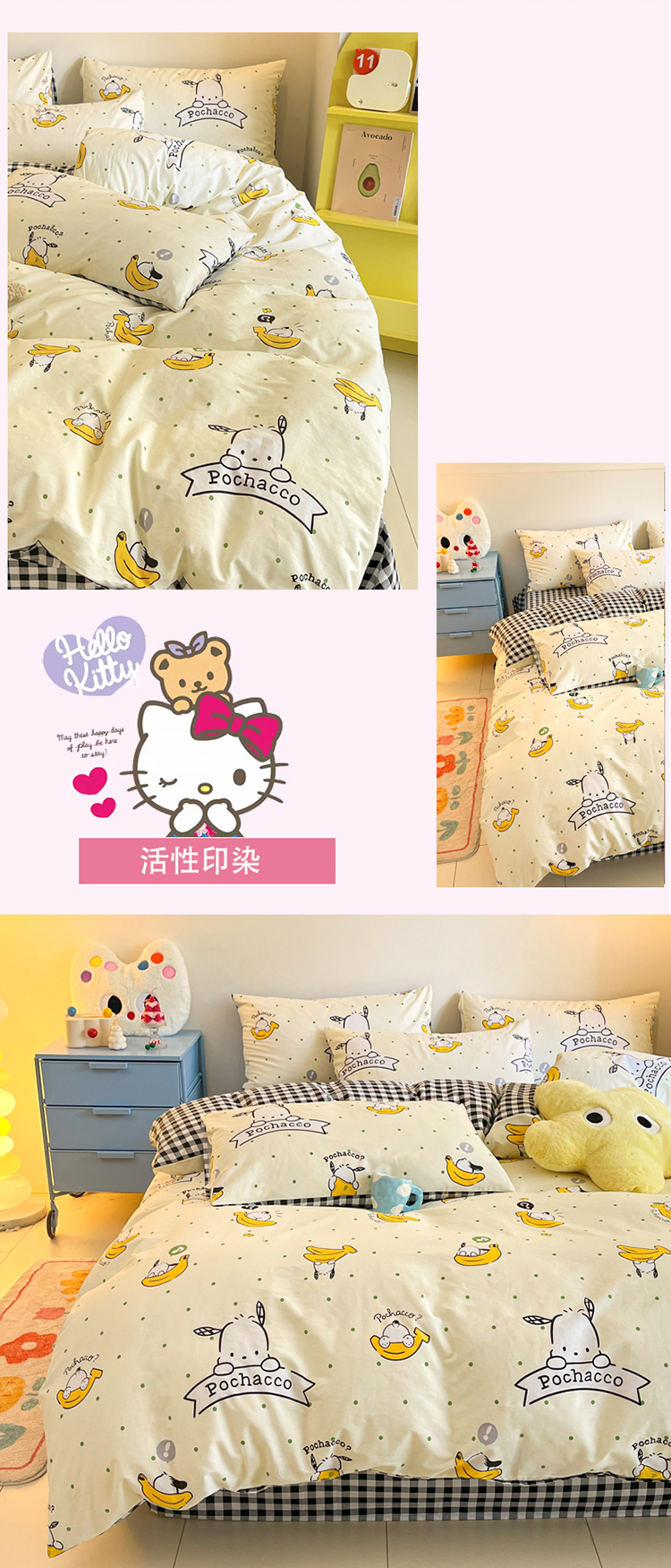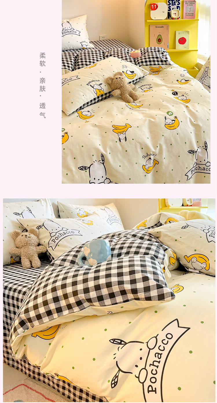 三朵 2024年全棉简单款三丽鸥系列四件套 香蕉帕恰狗