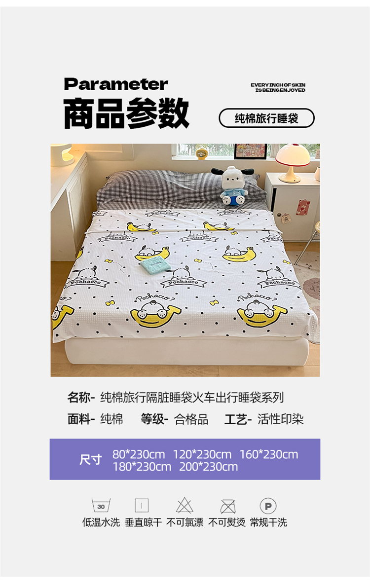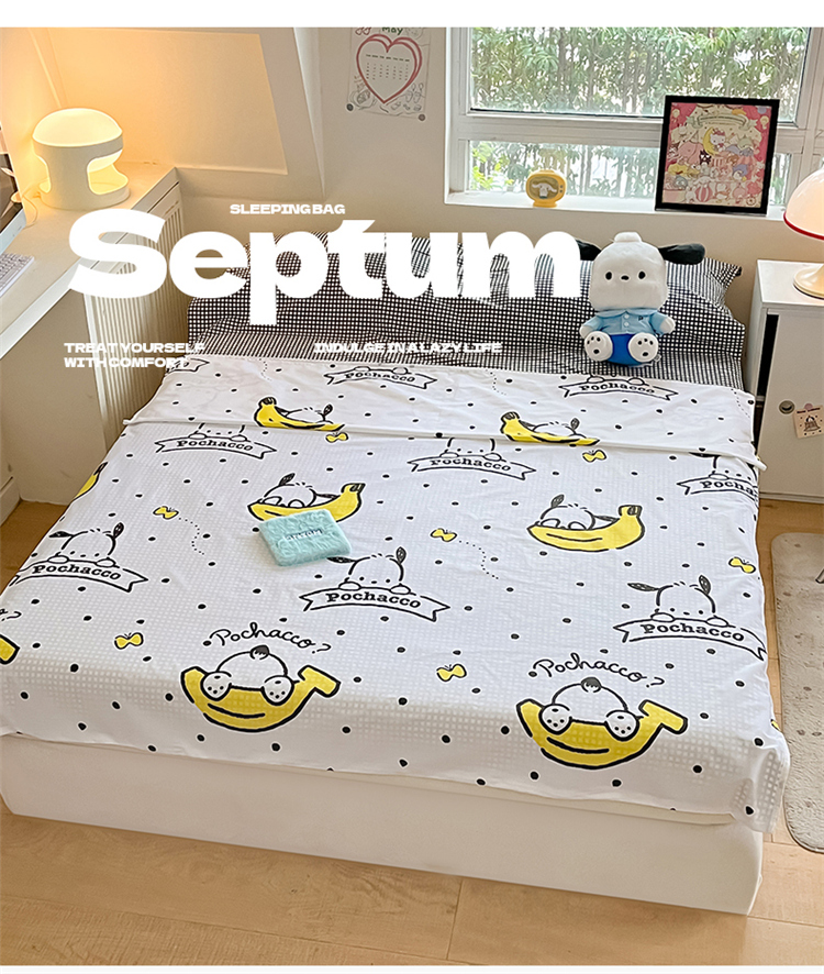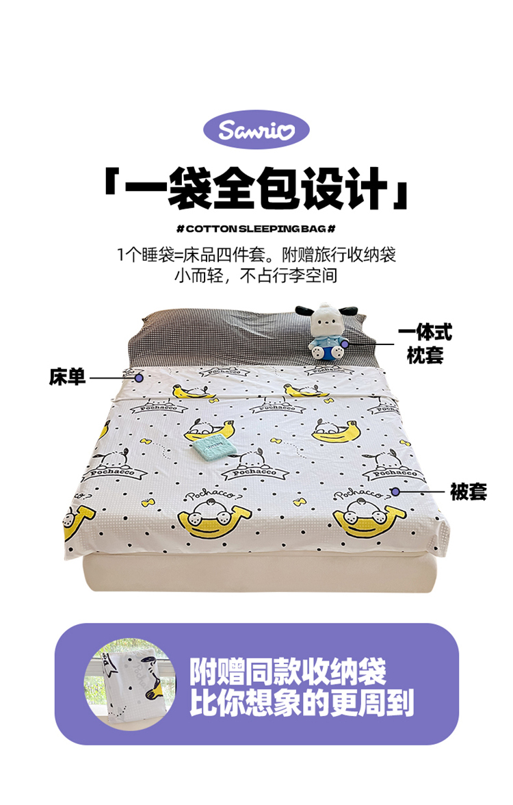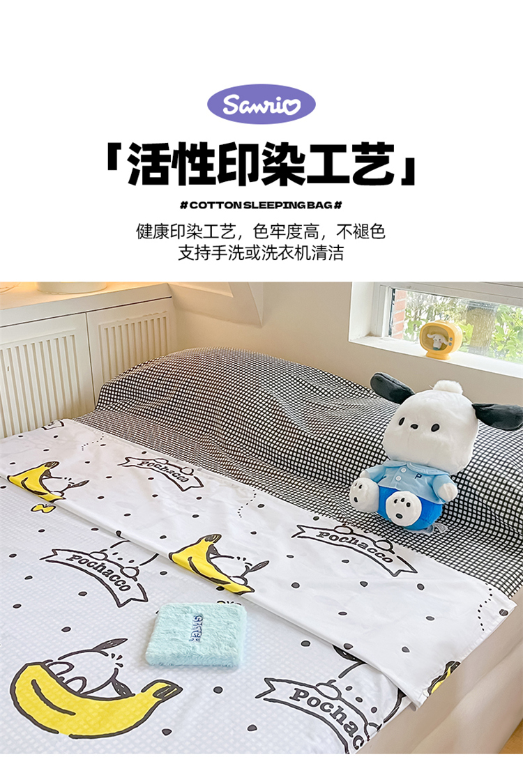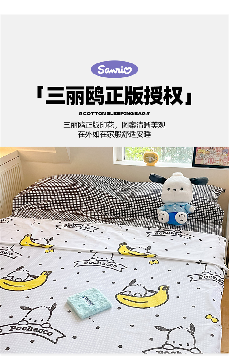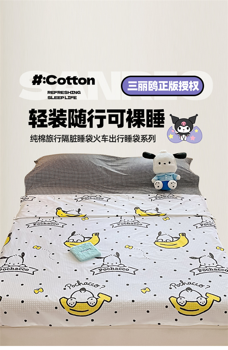 • 91家纺网 家纺一手货源 找家纺 金爱家 2024新款三丽鸥正版授权纯棉旅行隔脏睡袋火车出行睡袋系列(送同款收纳袋) 纯棉睡袋-香蕉帕恰狗