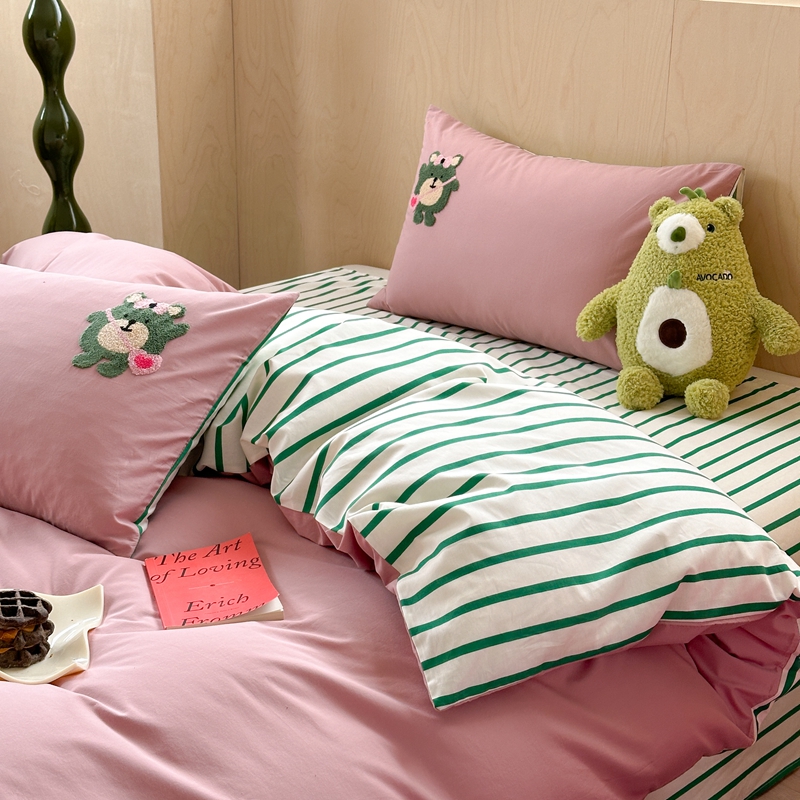 (总)柚子YOUTH 225新款全棉双层纱球球款四件套,薄荷绿条,波点霉霉,波点小丑,蓝心,芊芊结,碎花点点