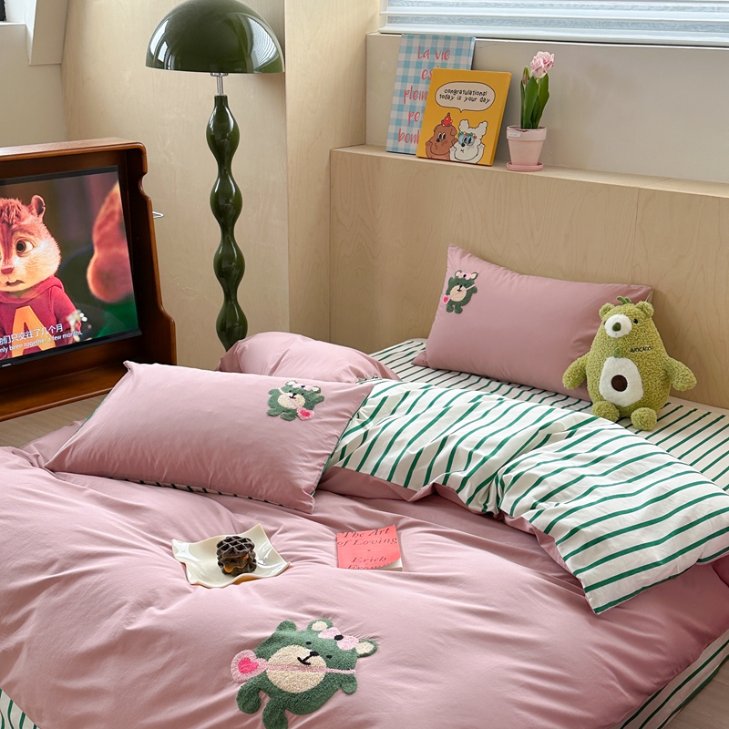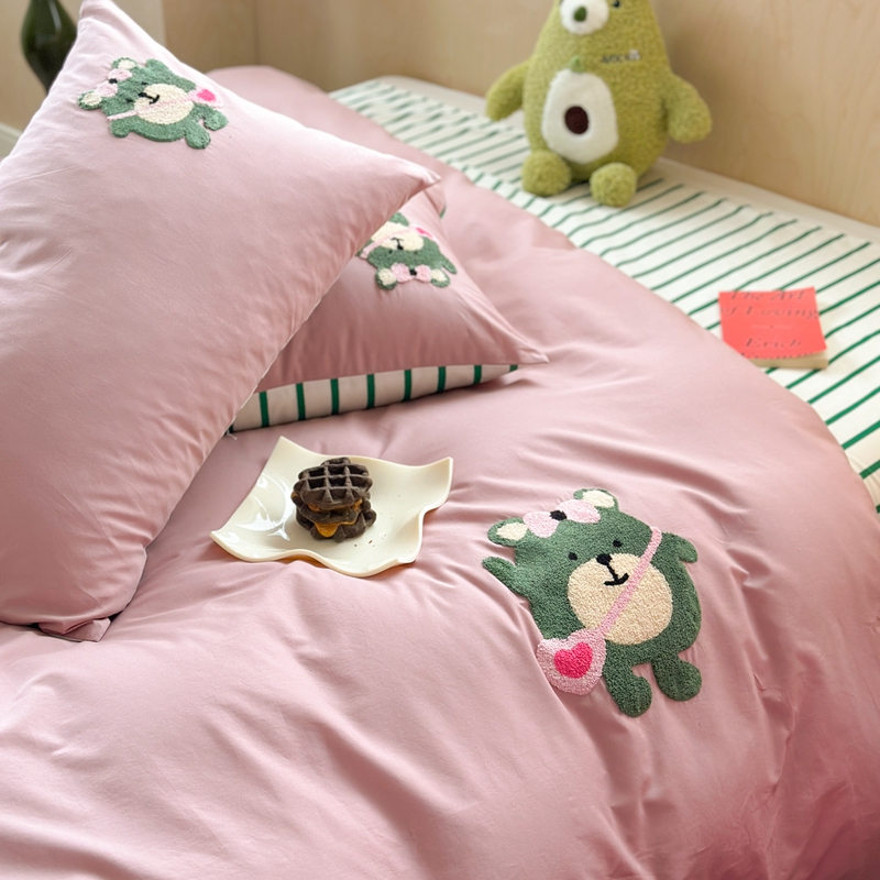 柚子YOUTH 2024新款40支全棉水洗棉印+绣跑量款四件套 约克熊