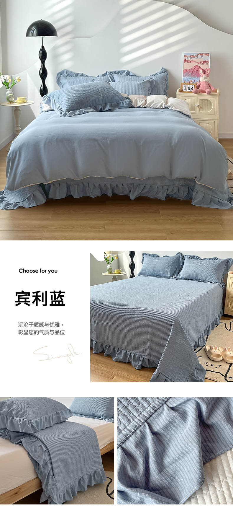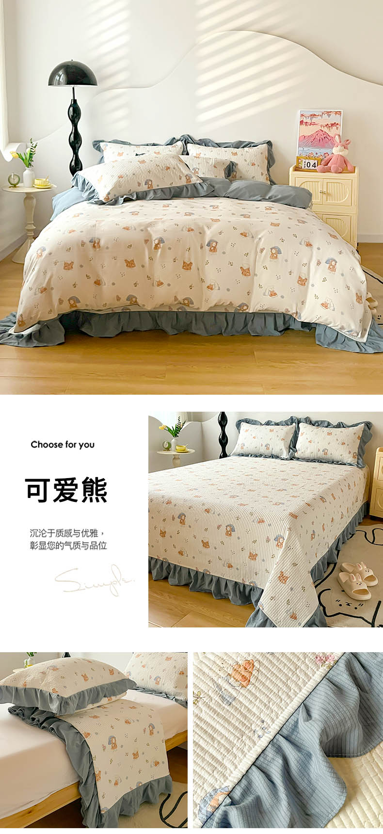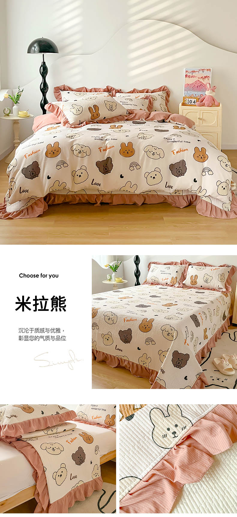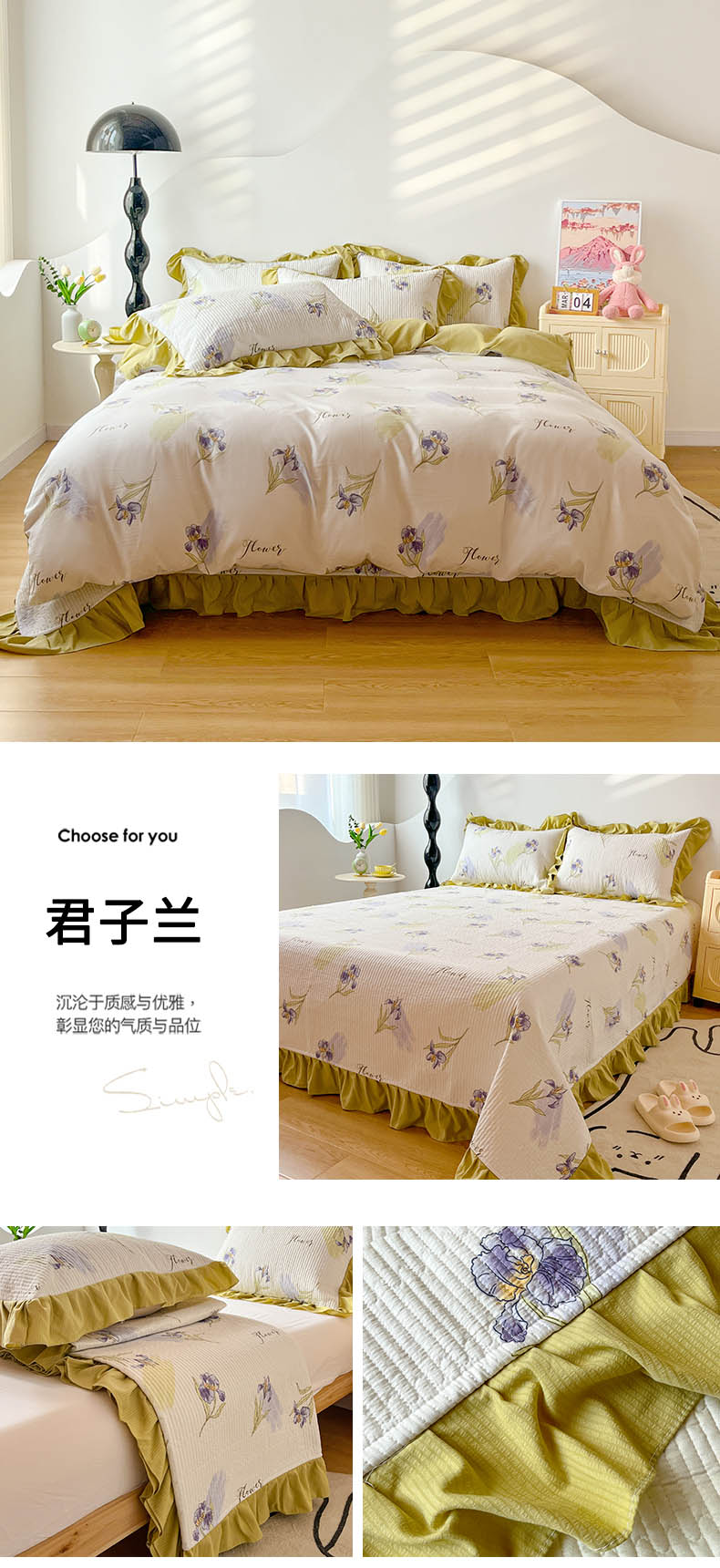 商品名称:(总)子曰 2024新款印花素色花边床盖三件套四件套