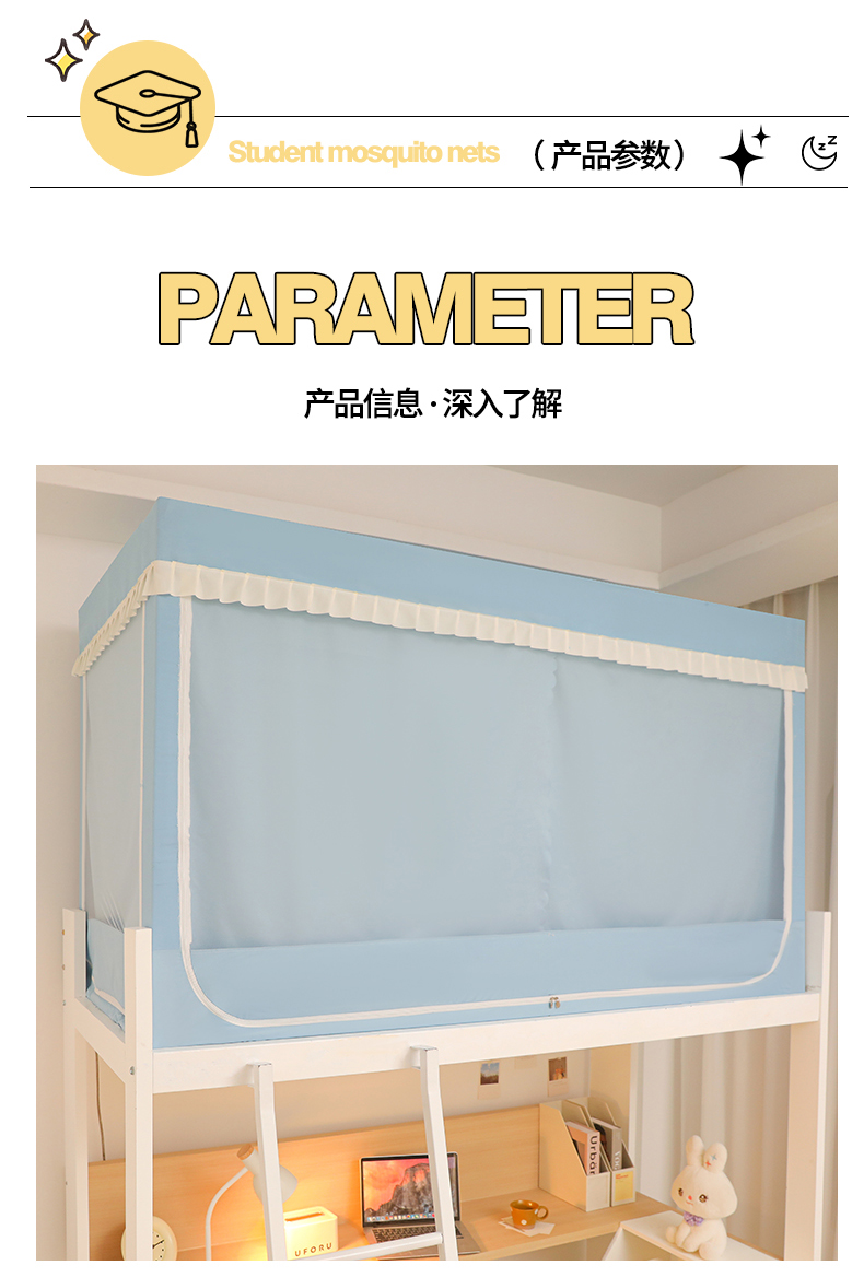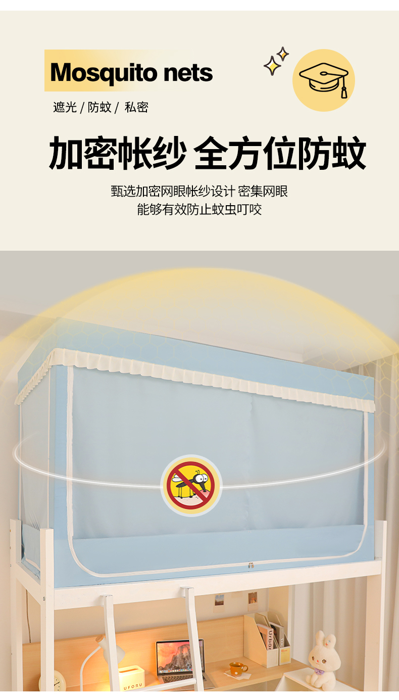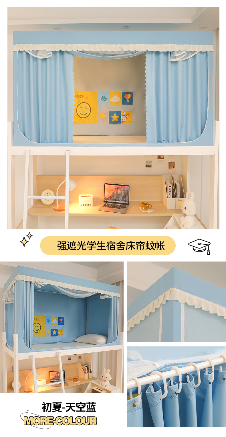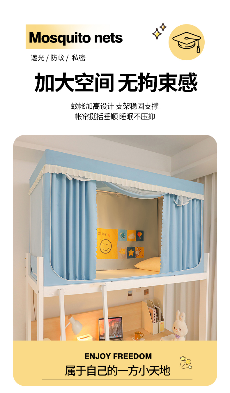 当前位置: 91家纺网 > 商品网购 > 床上用品 > 蚊帐 > 学生蚊帐 > 梦精灵家纺 2025新款强遮光防蚊学生蚊帐 上铺 90*190*110免拼接支架 初夏-天空蓝