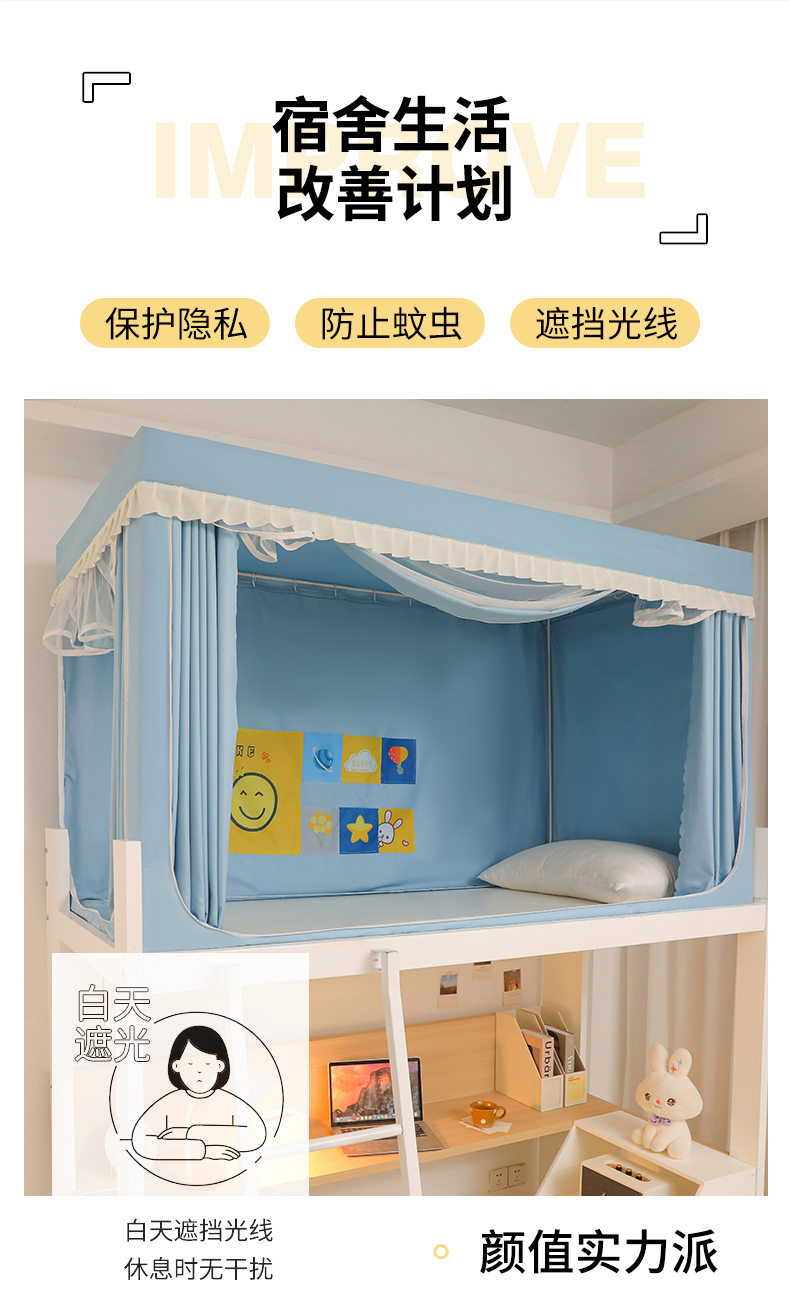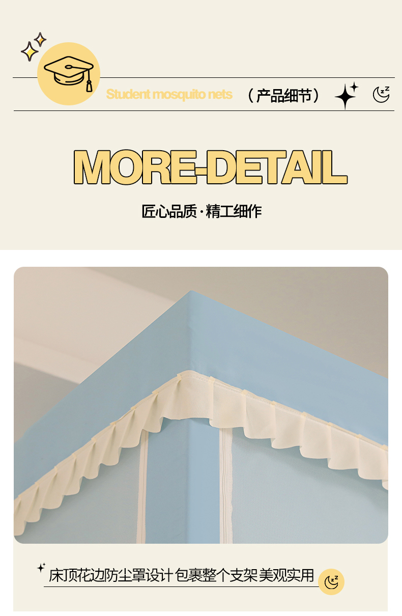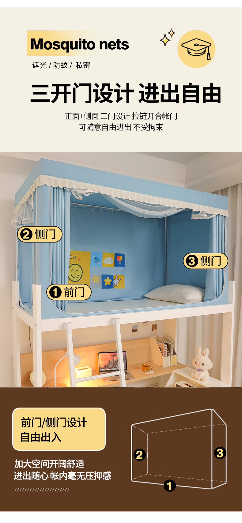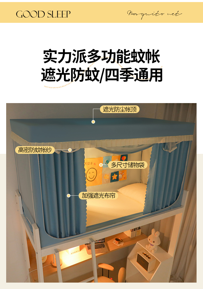当前位置: 91家纺网 > 商品网购 > 床上用品 > 蚊帐 > 学生蚊帐 > 梦精灵家纺 2025新款强遮光防蚊学生蚊帐 上铺 90*190*110免拼接支架 初夏-天空蓝