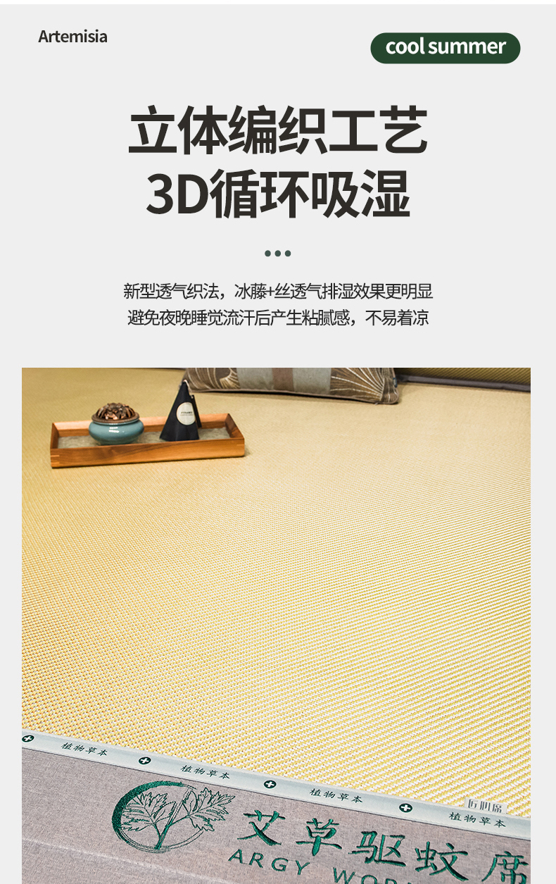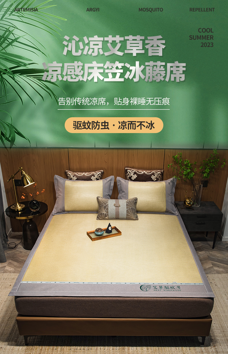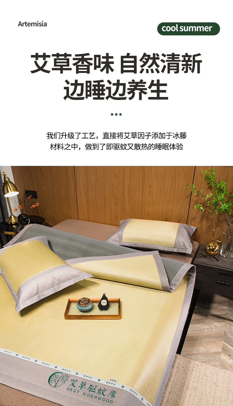 商品名称:全季家居 2024新款A类艾草驱蚊冰藤席 艾草-橙黄