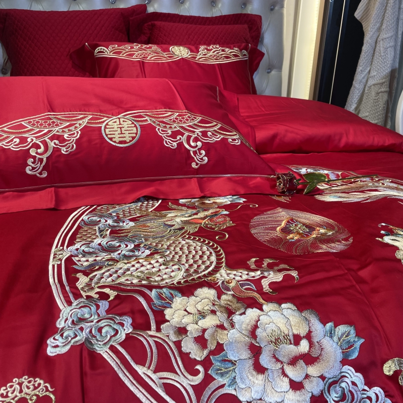 玖玖爱 2024新款100支提花婚庆四件套 龙凤至美