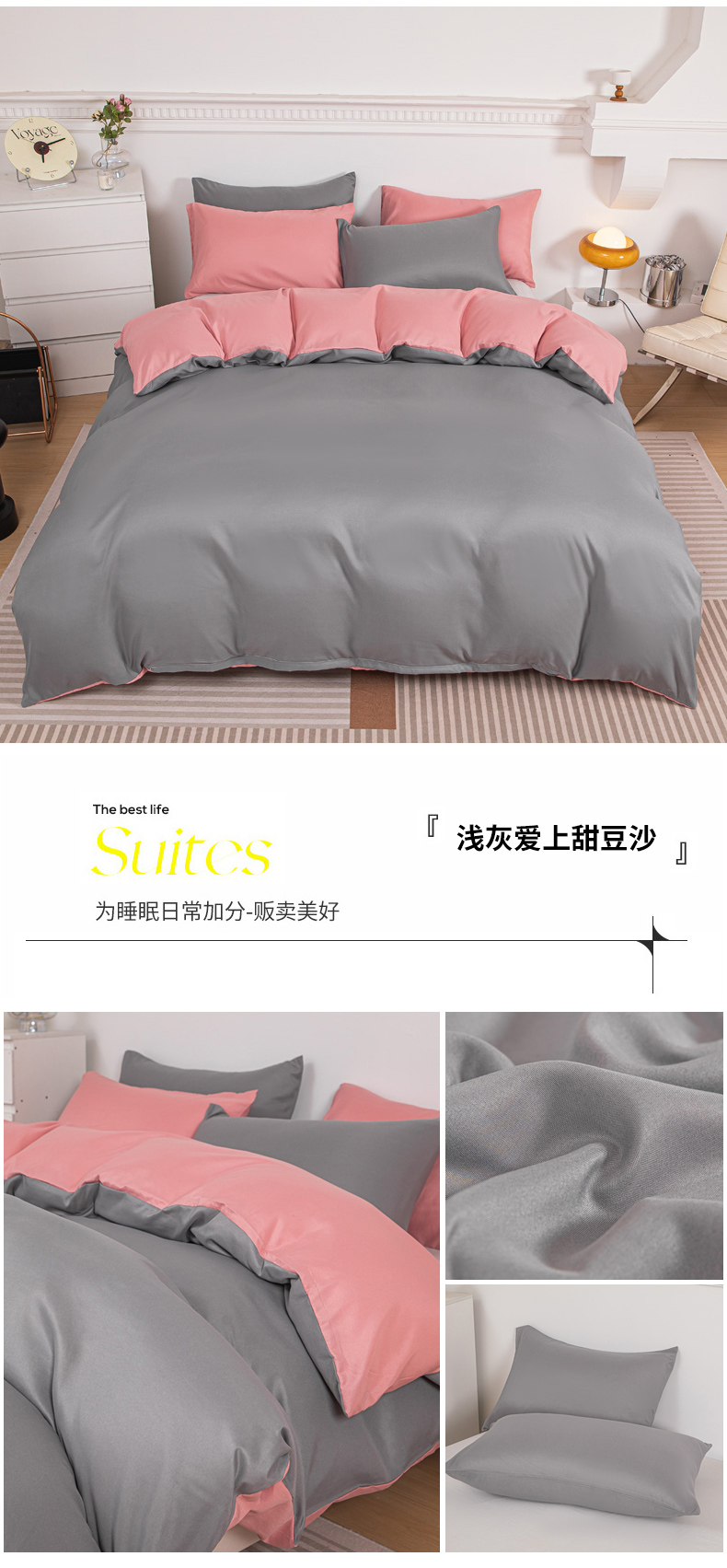 当前位置: 91家纺网 > 商品网购 > 床品套件 > 四件套 > 其它四件套 > 莎臣豹 2025新款水洗棉磨毛纯色双拼简约风撞色四件套 浅灰爱上甜豆沙