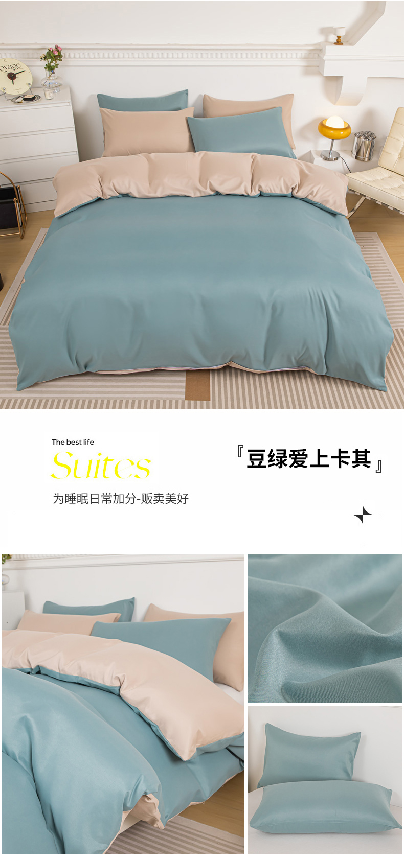 当前位置: 91家纺网 > 商品网购 > 床品套件 > 四件套 > 其它四件套 > 莎臣豹 2025新款水洗棉磨毛纯色双拼简约风撞色四件套 豆绿爱上卡其