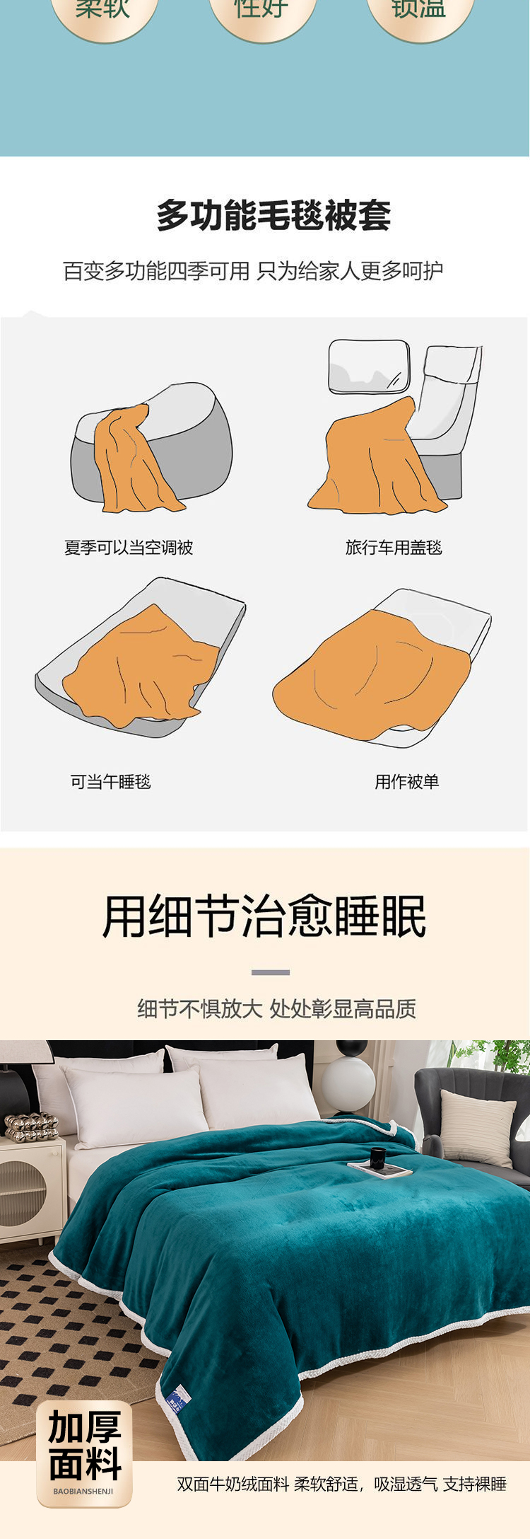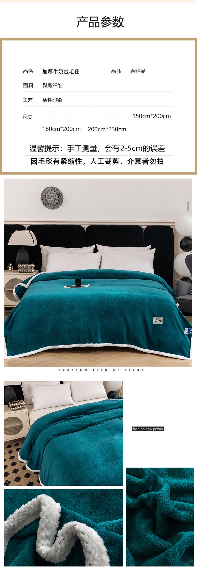 商品名称:凤凰林毛毯 2024新款加厚亲肤牛奶绒毛毯 沉墨绿