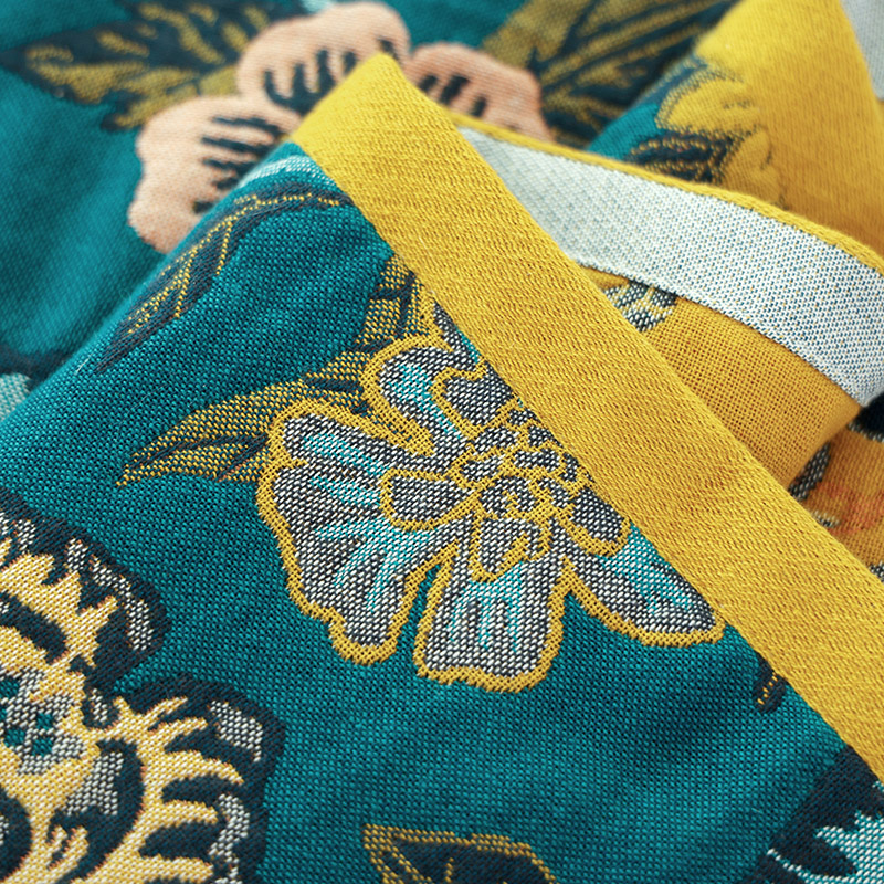• 91家纺网 家纺一手货源 找家纺 朴尔毛巾被2024新款彩棉国潮风全棉六层纱布枕巾 花间物语-蓝枕巾52*78cm