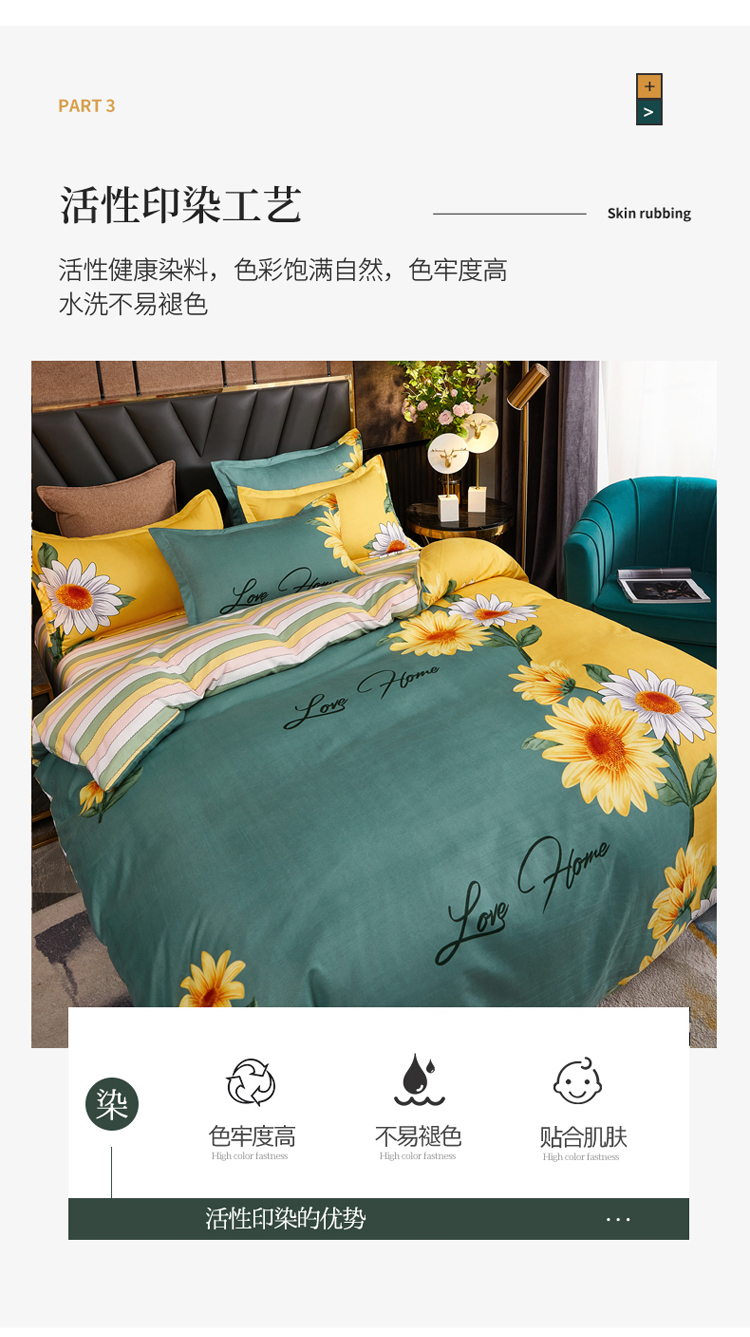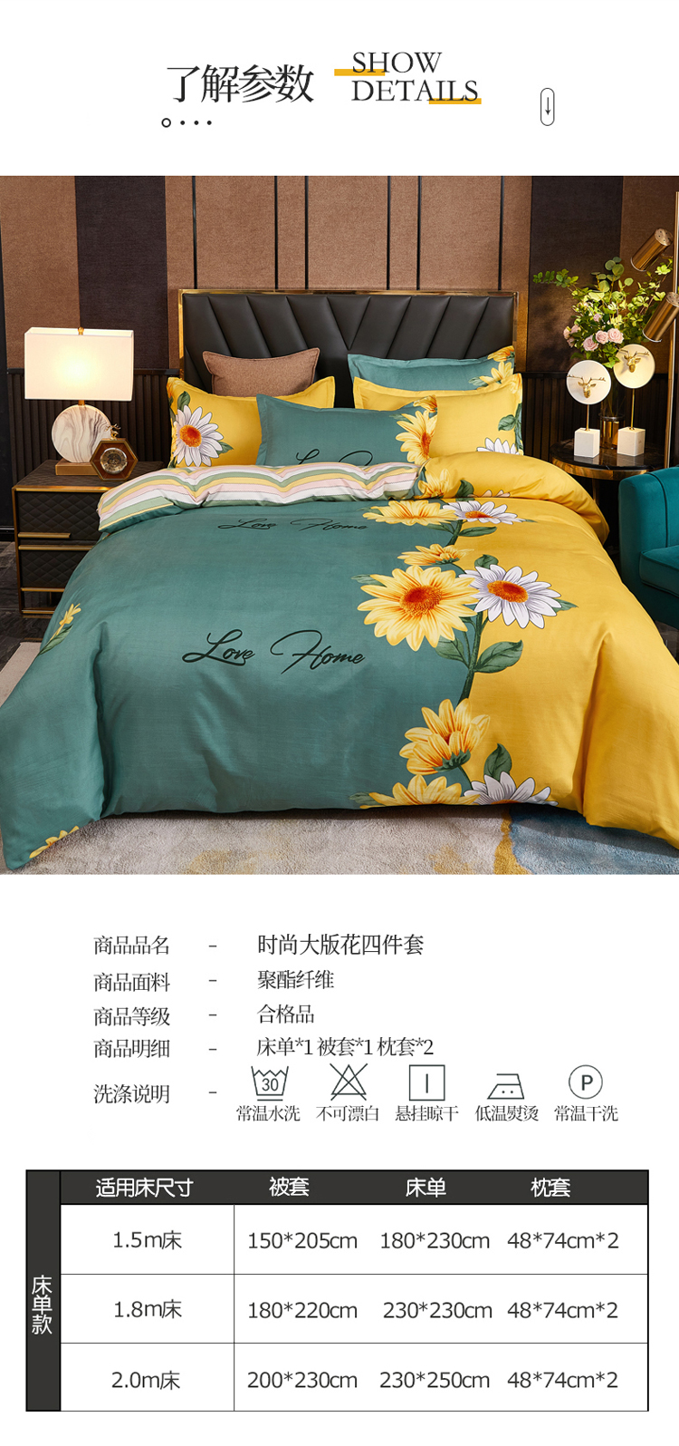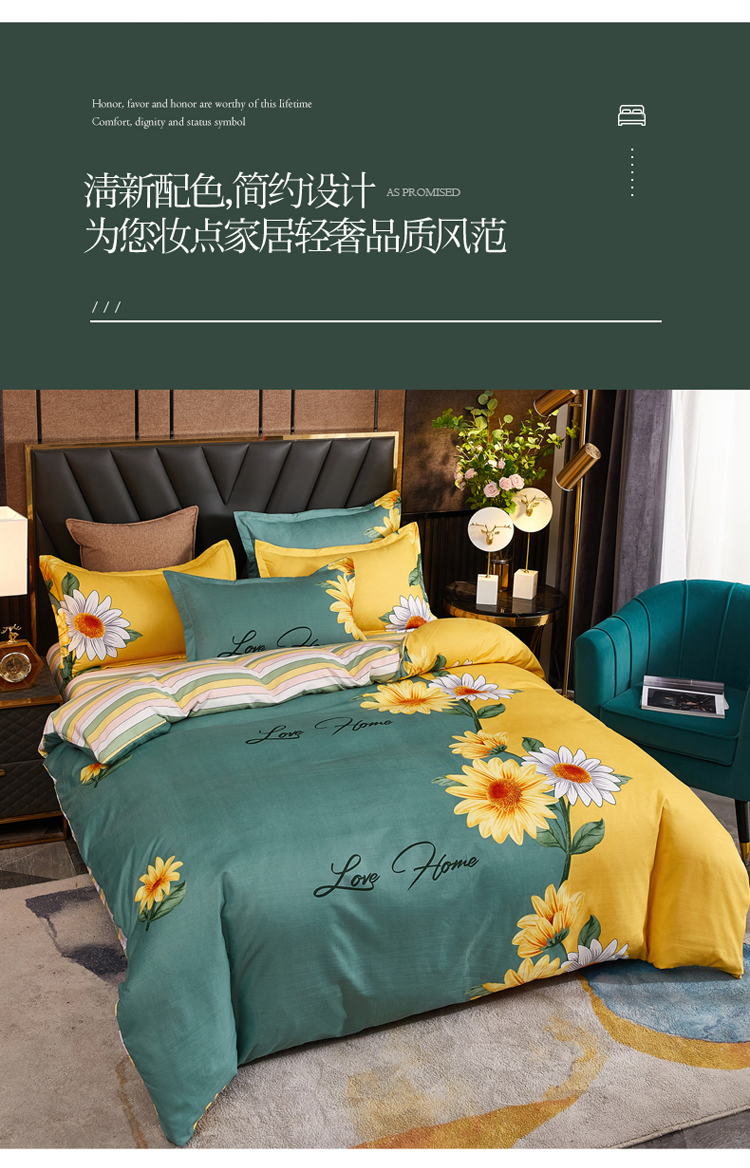 商品名称:美宜家 2025新款磨毛大版印花四件套 恬静时光-绿