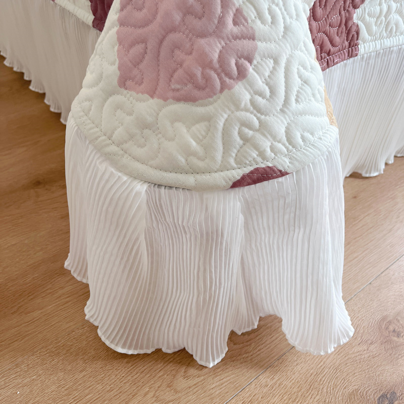 商品名称:添越 2024小清新韩版蕾丝花边纯棉夹棉床盖三件套全棉-怦然心动-粉