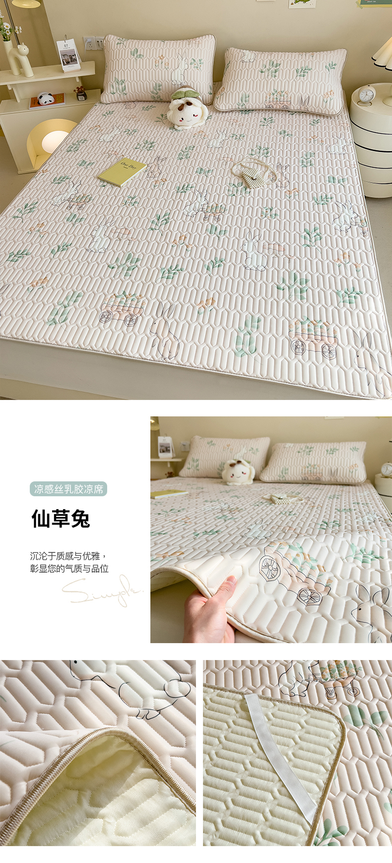 商品名称:世纪绒品 2026新款凉感丝印花款乳胶凉席 仙草兔