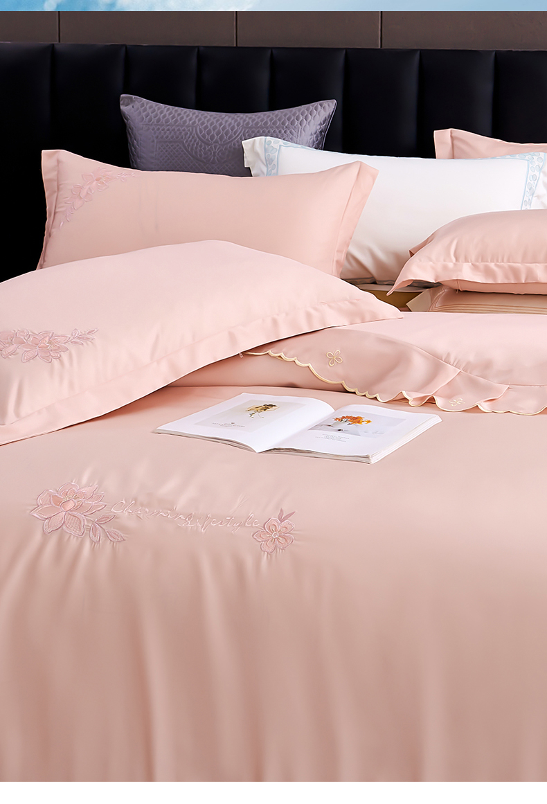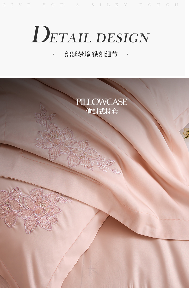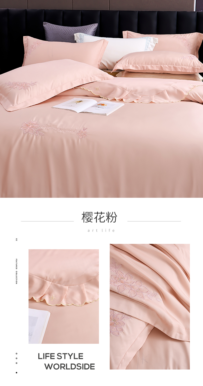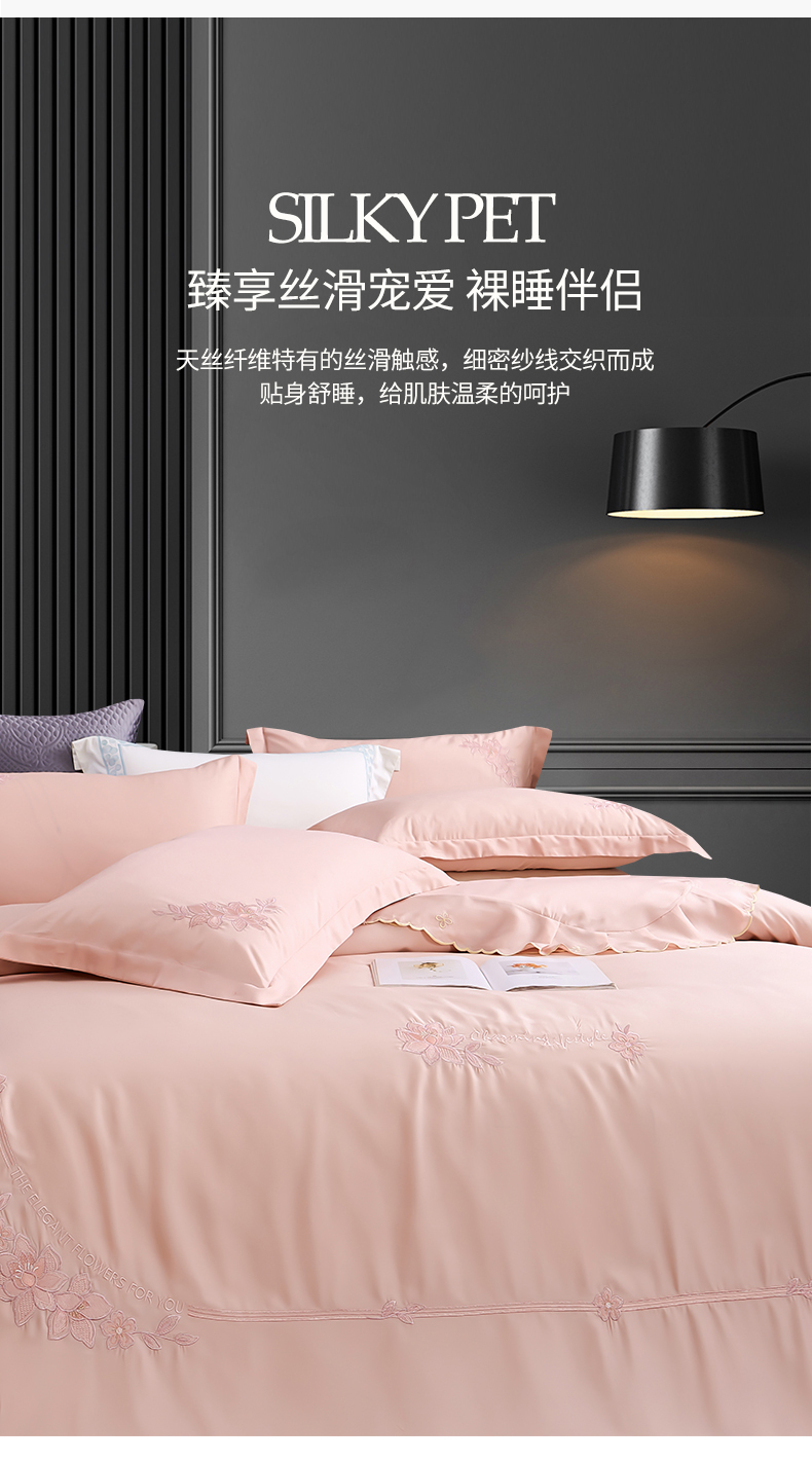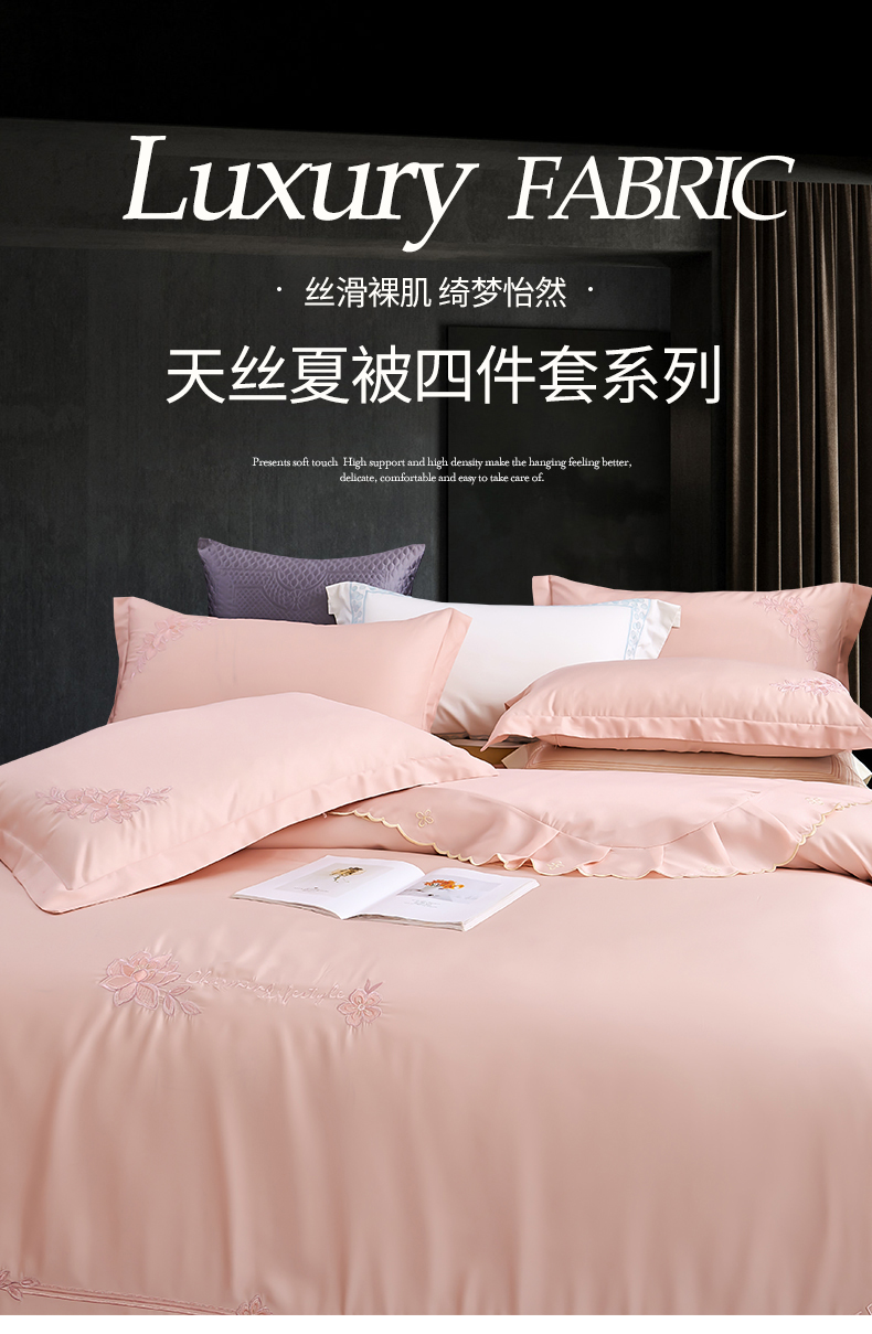 商品名称:保罗圣迪奥 2024新款天丝夏被四件套-巴黎之夜 樱花粉