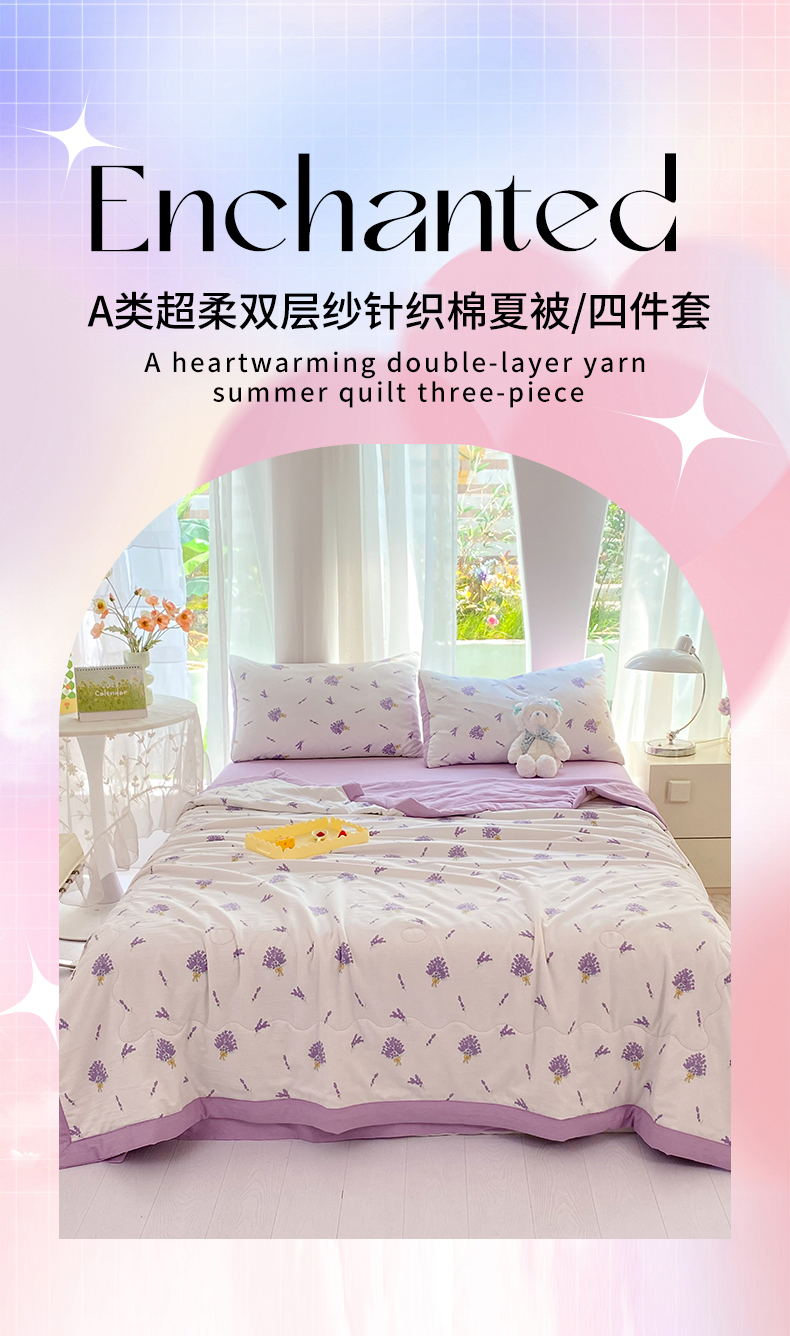 • 91家纺网 家纺一手货源 找家纺 妖妖家纺 2024新款超柔软糯水洗云朵棉印花夏被四件套 及风情