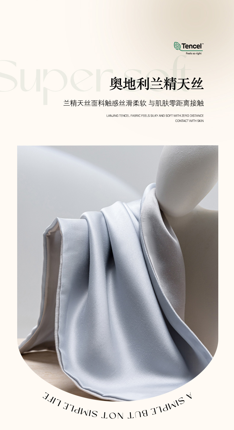 商品名称:云栖家居 202460支A类兰精天丝系列单品枕套(风格一) 海兰+银灰