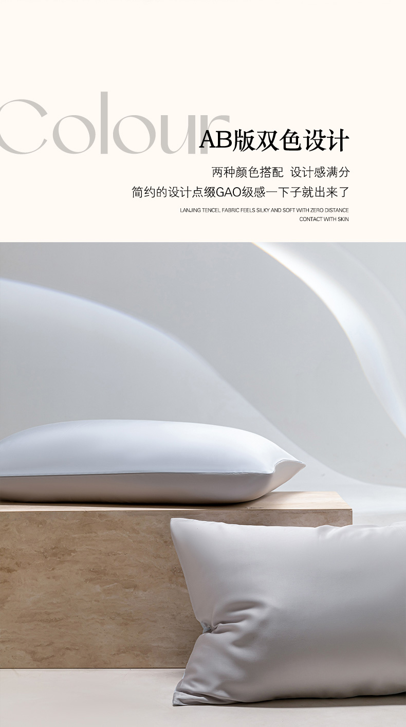 云栖家居 202460支A类兰精天丝系列单品枕套(风格一) 海兰+银灰