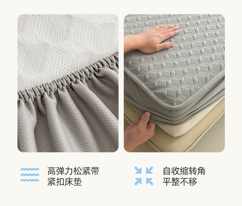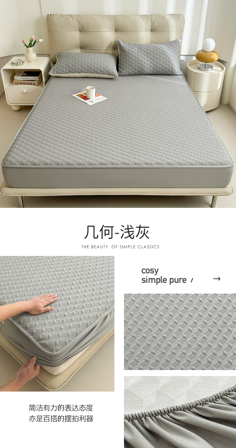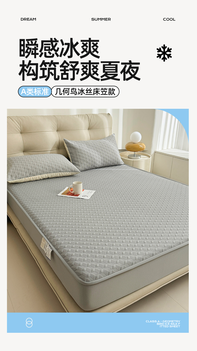 恒爱家纺 新款A类亲肤几何鸟冰丝床笠 几何-浅灰