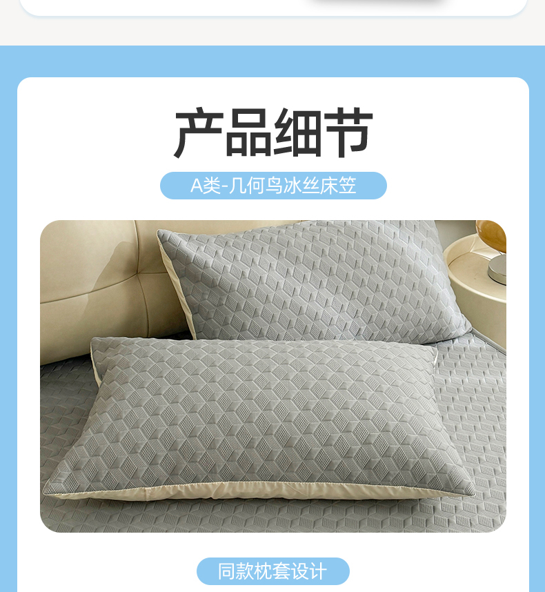 商品名称:恒爱家纺 新款A类亲肤几何鸟冰丝床笠 几何-浅灰