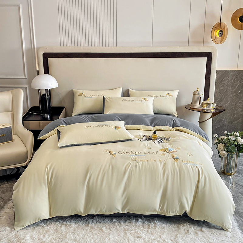 孟鑫 2025新款水洗磨毛刺绣绣花四件套-三生有杏系列 米白