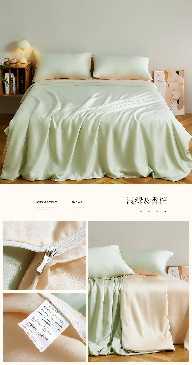 商品名称:云栖家居 202460支A类兰精天丝系列单品被套(风格二) 浅绿&香槟