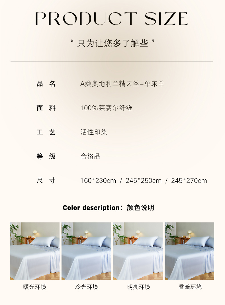 商品名称:云栖家居 202460支A类兰精天丝系列单品床单(风格二) 米白