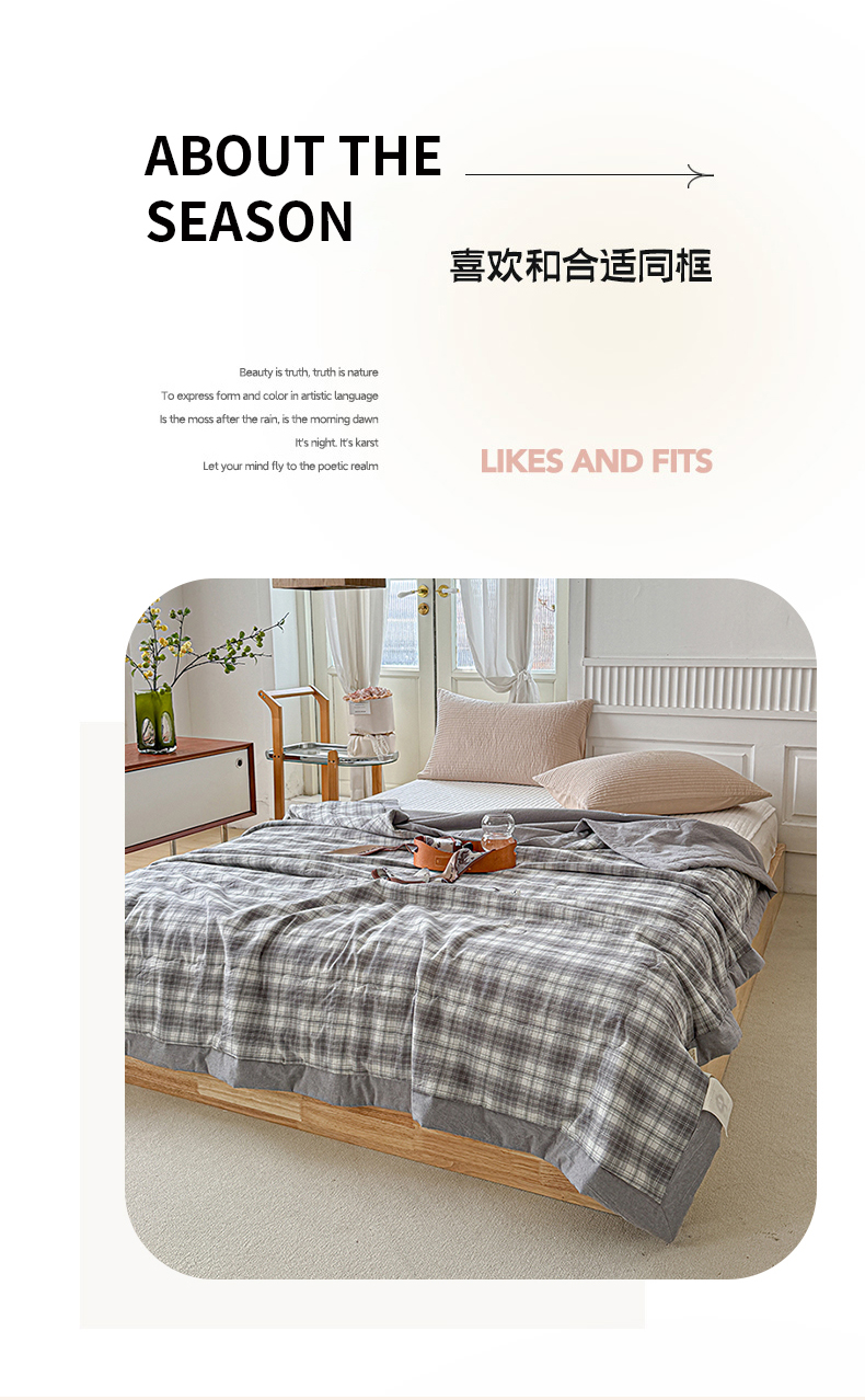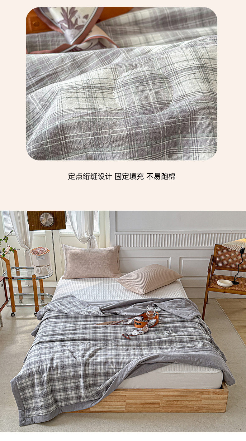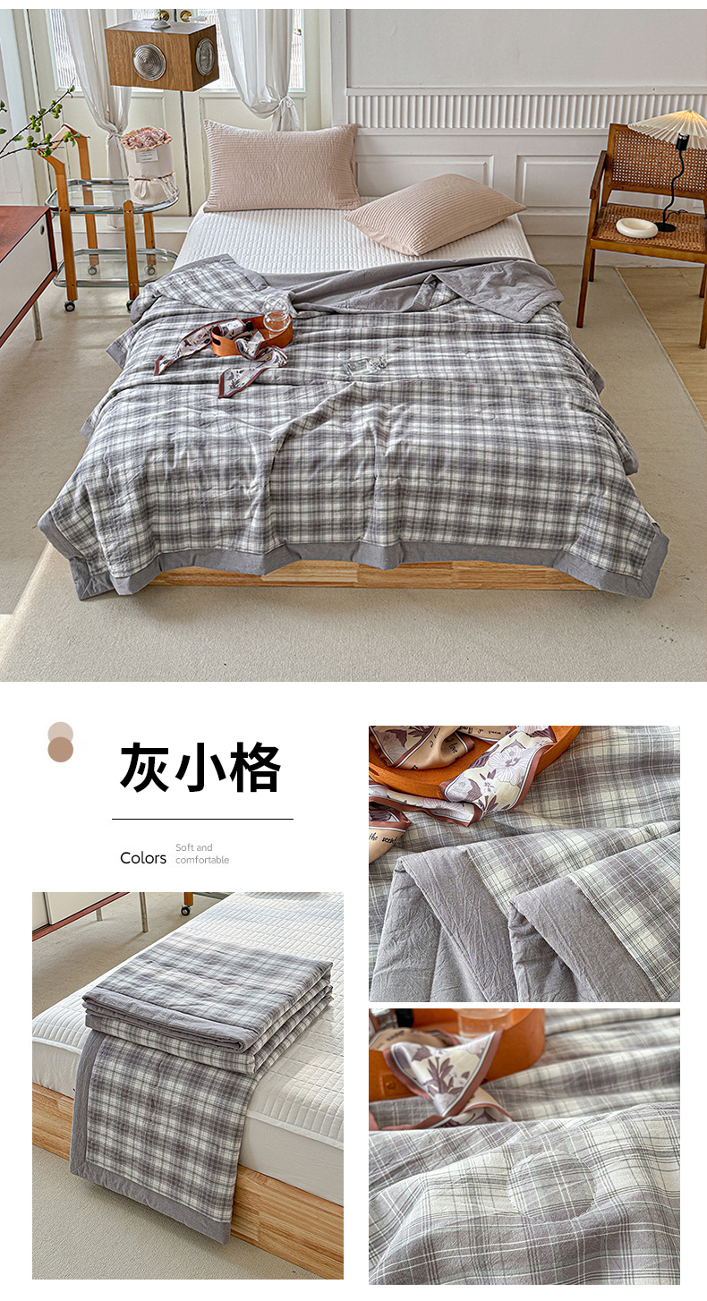 源舜家纺 2025新款全棉色织无印夏被 灰小格