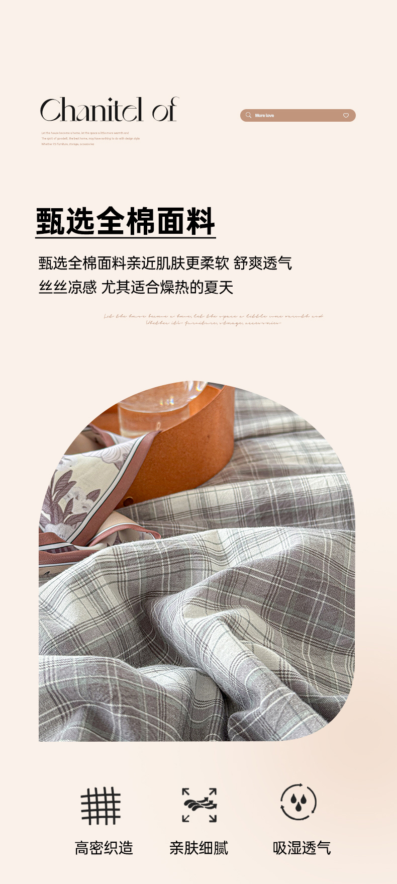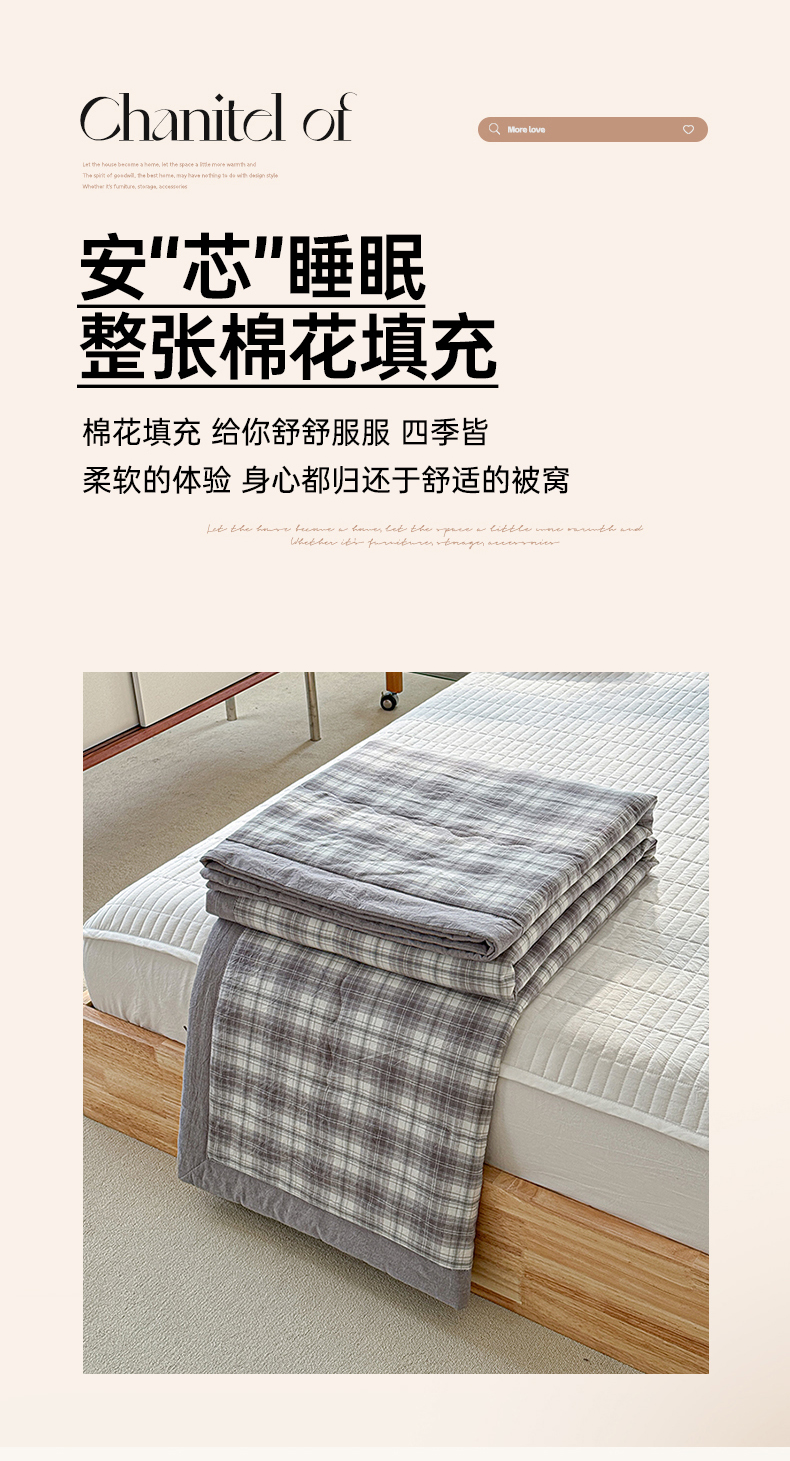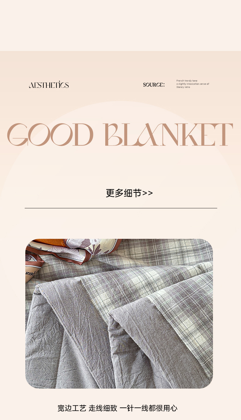 源舜家纺 2025新款全棉色织无印夏被 灰小格