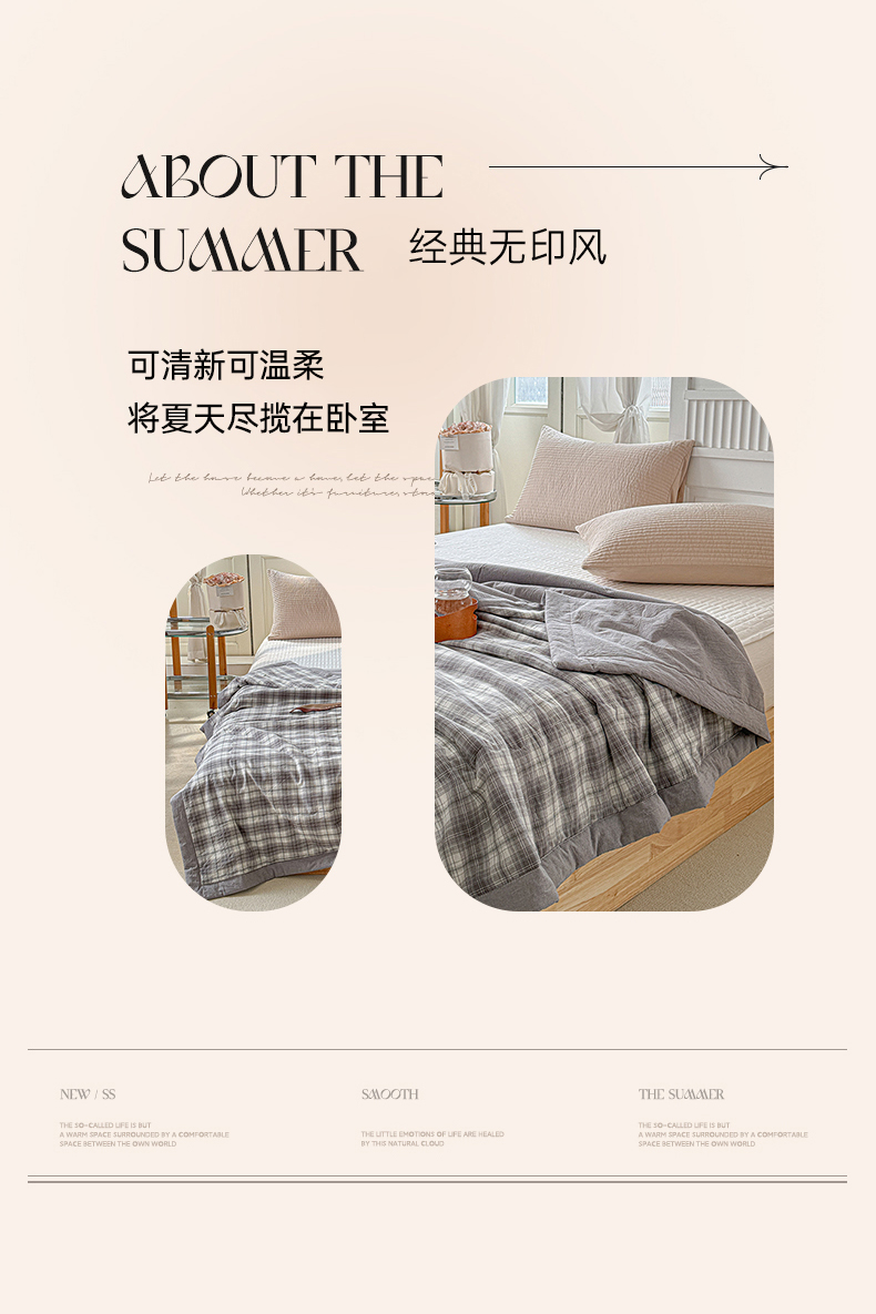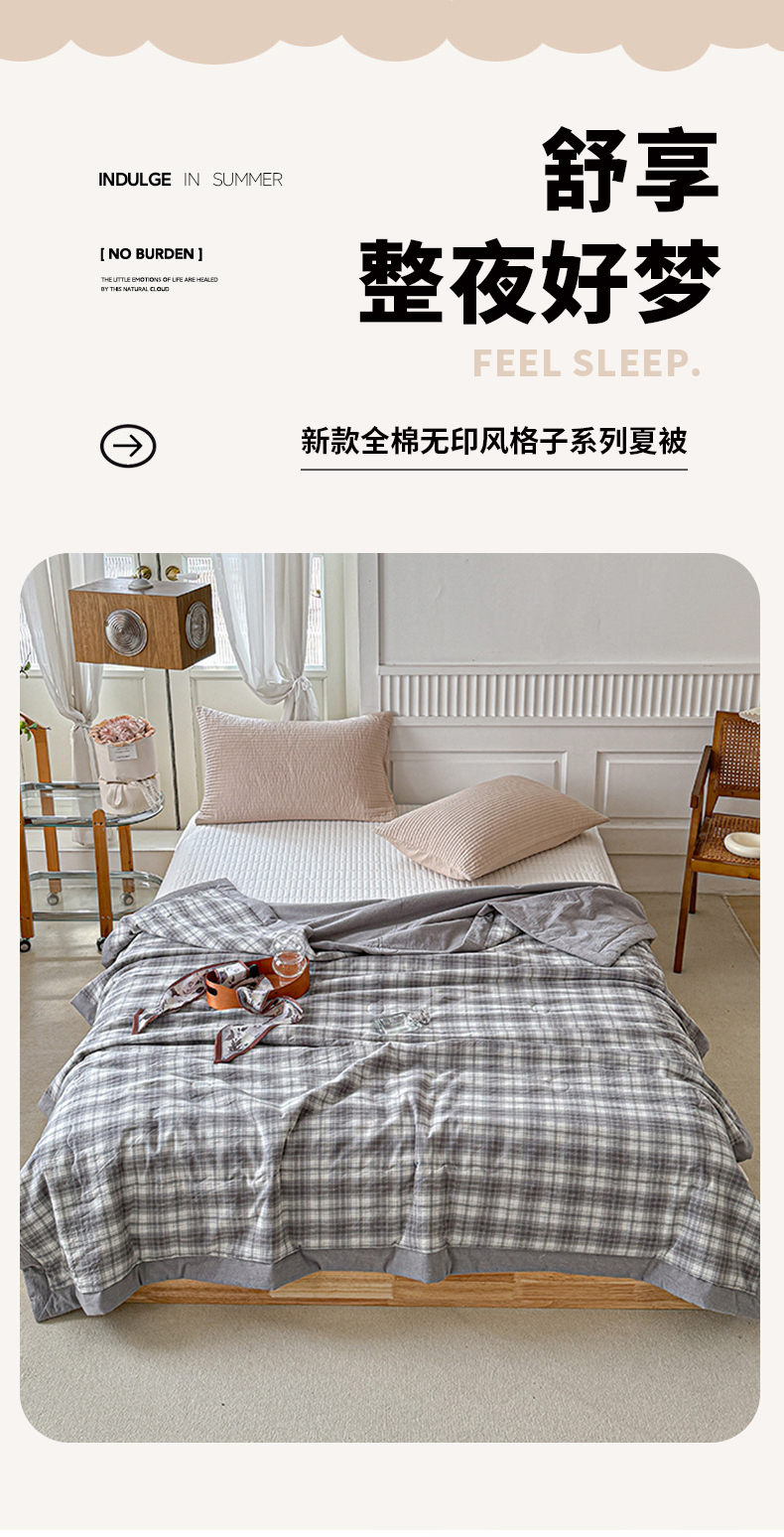商品名称:源舜家纺 2025新款全棉色织无印夏被 灰小格