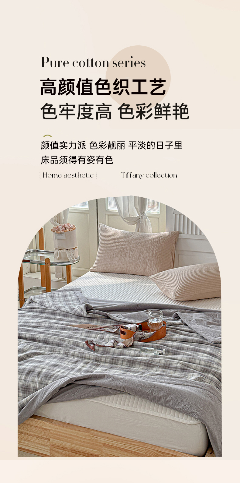 (总)源舜家纺 2025新款色织棉简约韩系花边床盖三件套,简约灰,简约粉,简约绿,简约驼,简约蓝