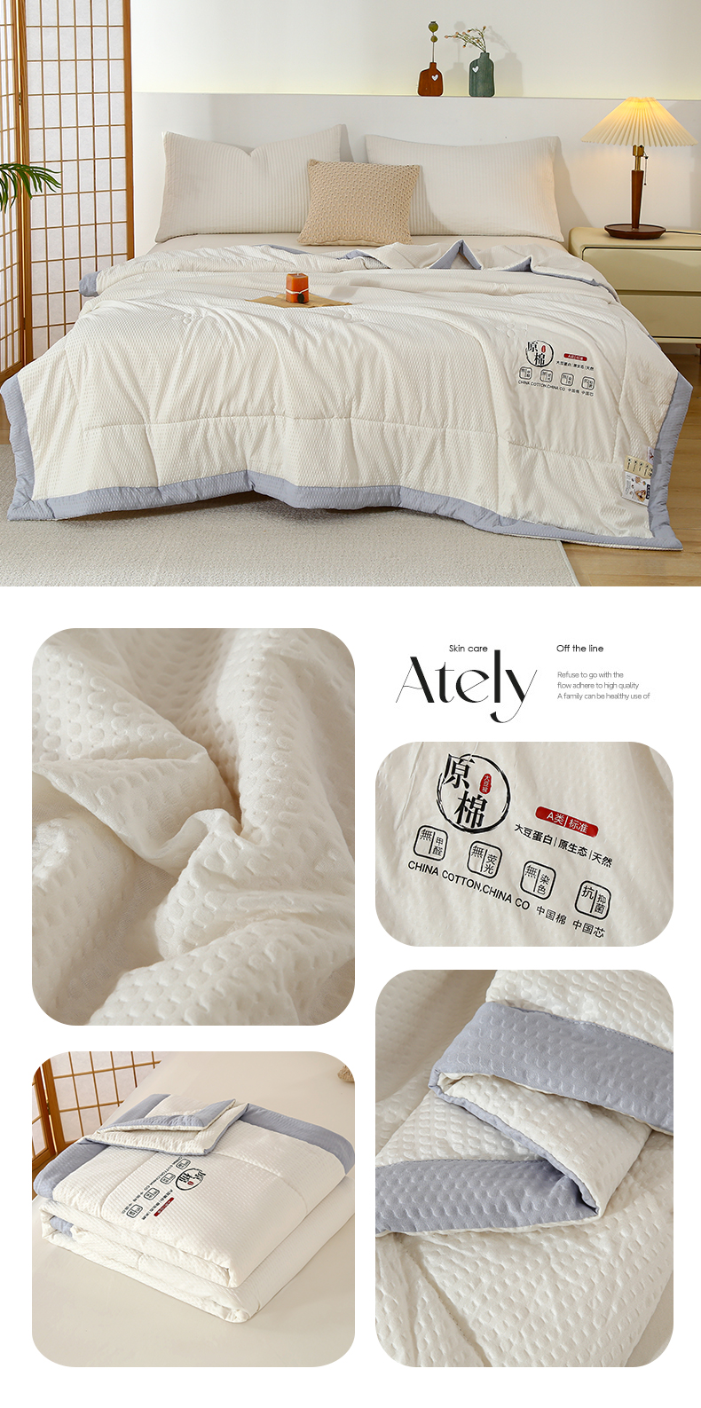 (总)江山被业 2025新款华夫格提花针织棉大豆纤维夏被,奶油白,山茶粉,水波绿,绅士灰